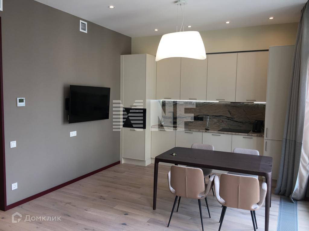 Встроенная кухня оснащена необходимой бытовой техникой, квартира полностью меблирована. Предусмотрена система кондиционирования и приточно-вытяжной вентиляции.