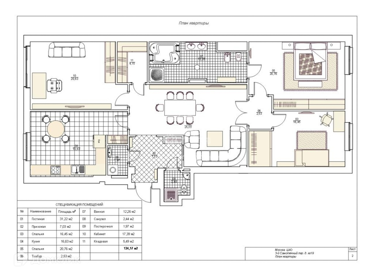 4-комнатная квартира, 139 м2, этаж 3 / 9, на продажу в Москве, 3-й Самотёчный переулок, 11к2