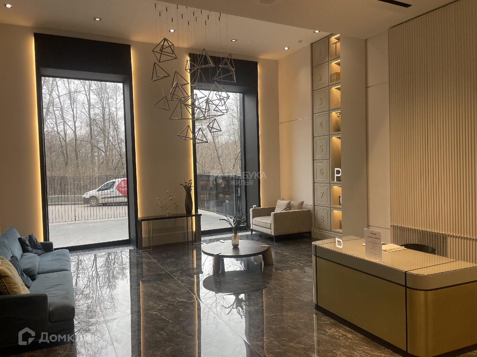 ЖК состоит из 4-х 30 эт башен, объеденные общим стилобатом, в котором размещены супермаркет, фитнес-центр, зона для отдыха. Квартира находиться в башне Менделеев.