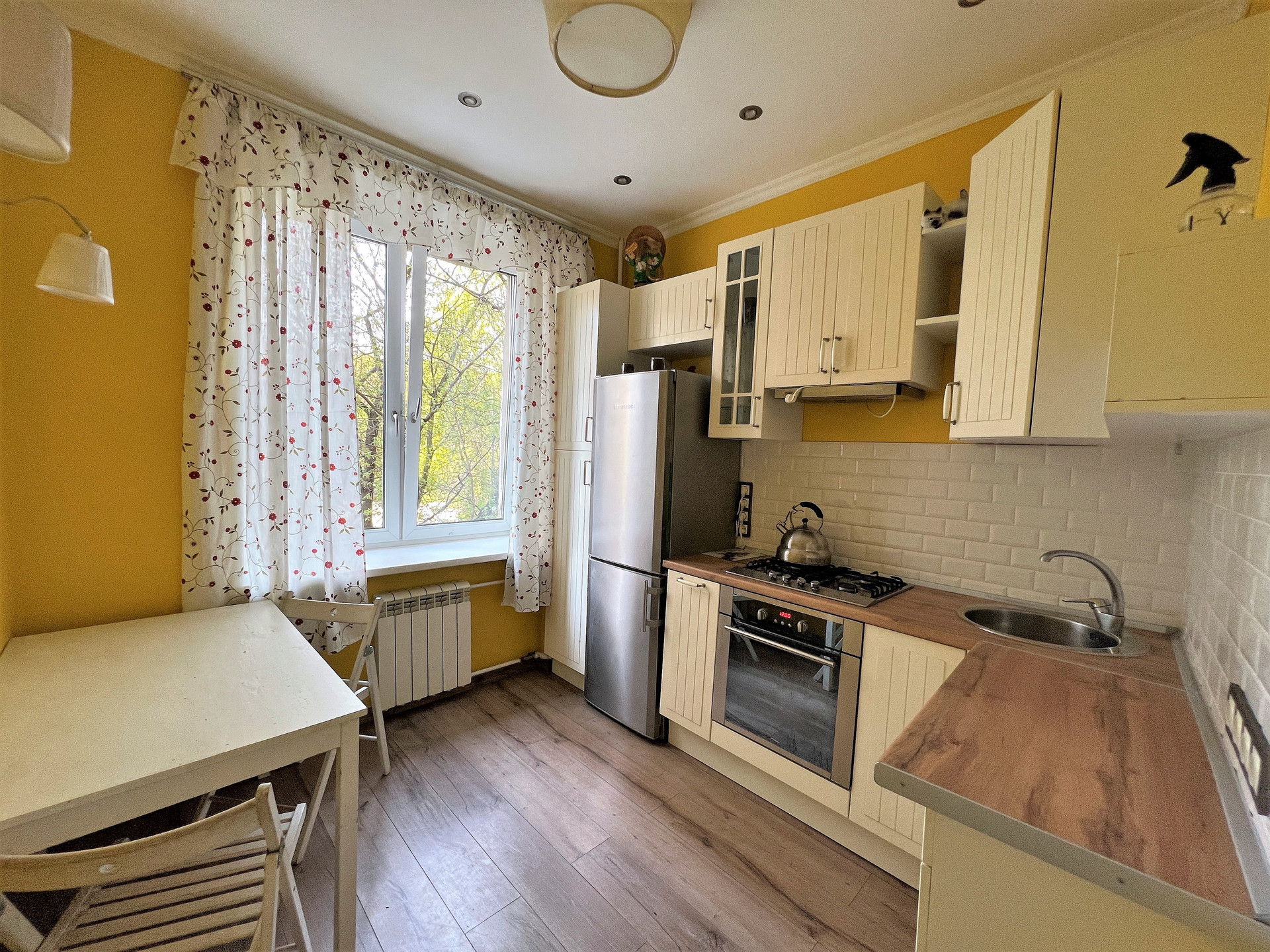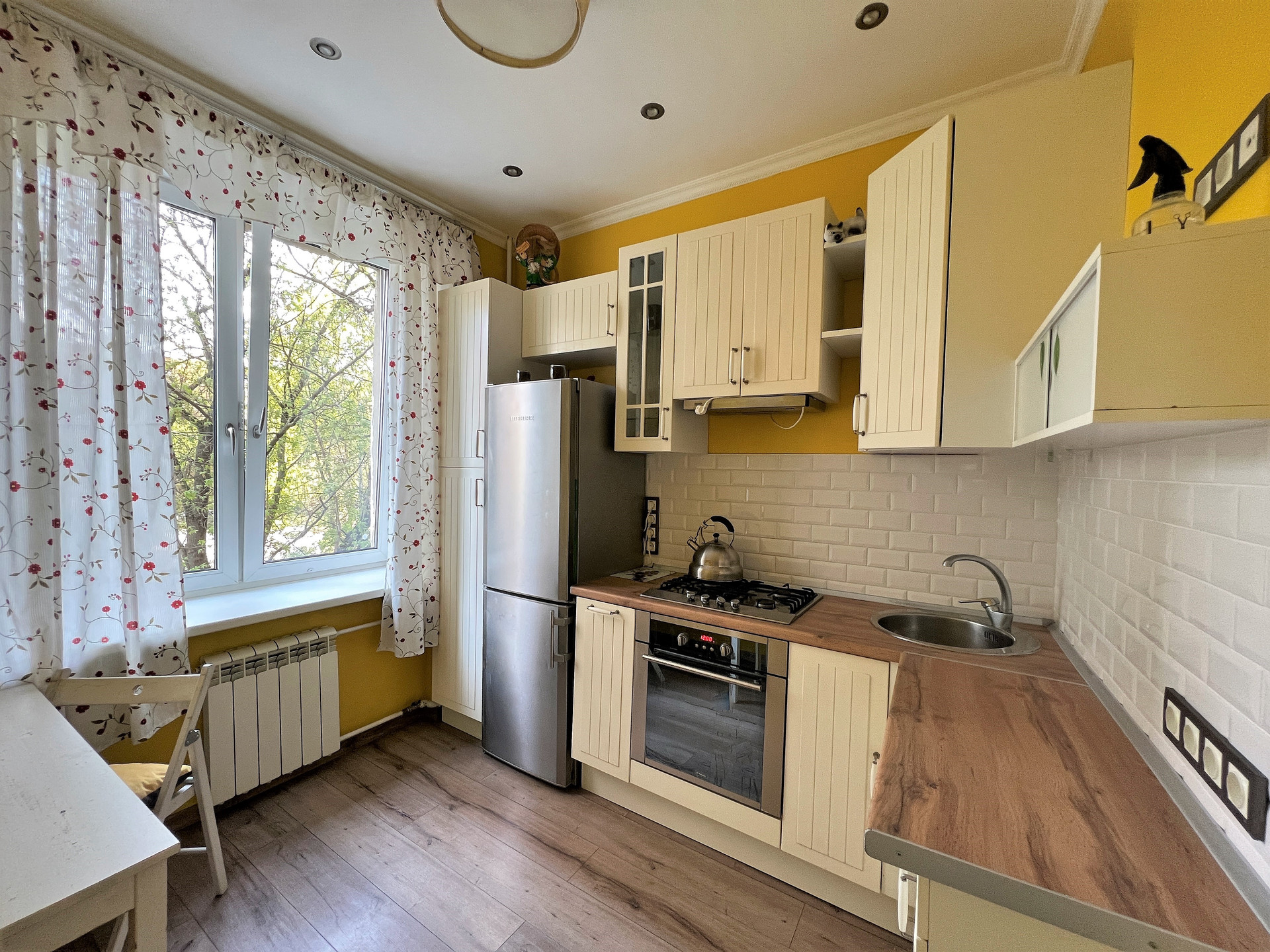 Двухкомнатная квартира, в теплом сталинском доме, в одном из лучших районов Столицы, в пешей доступности от трех станций метро. Квартира общей площадью 57,6кв.м., комнаты изолированные 17,6 и 15,4 кв.м., сан/узел раздельный, высота потолков 3м, ж/б перекрытия. Квартира в прекрасном состоянии, с качественным ремонтом в современном стиле, покрытие полов выполнено: ламинат+плитка, сан/узел- кафель, подвесной потолок из гипсокартона, стены - краска, ст/пакеты, проведена замена электрики и труб канализации. Квартира укомплектована встроенной кухней с техникой (варочная панель, духовой шкаф, вытяжка, холодильник) - включены в стоимость квартиры. Аккуратный и чистый подъезд. В квартире много света, тихий и очень ухоженный двор с детской и спортивной площадкой. Инфраструктура района очень насыщена, в шаговой доступности все необходимые муниципальные учреждения и торговые точки, вокруг много известных в Москве лицеев, гимназий и школ, а также совсем рядом Природный заказник "Долина реки Сетунь". Два взрослых собственника, приватизация 2020г