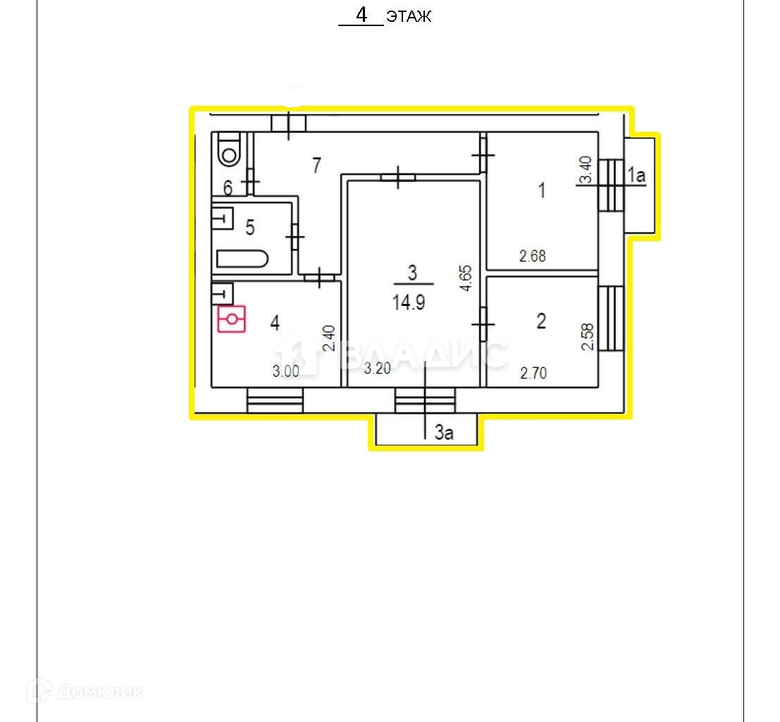 3-комнатная квартира, 53 м2, этаж 4 / 5, на продажу в Москве, Столярный переулок, 14