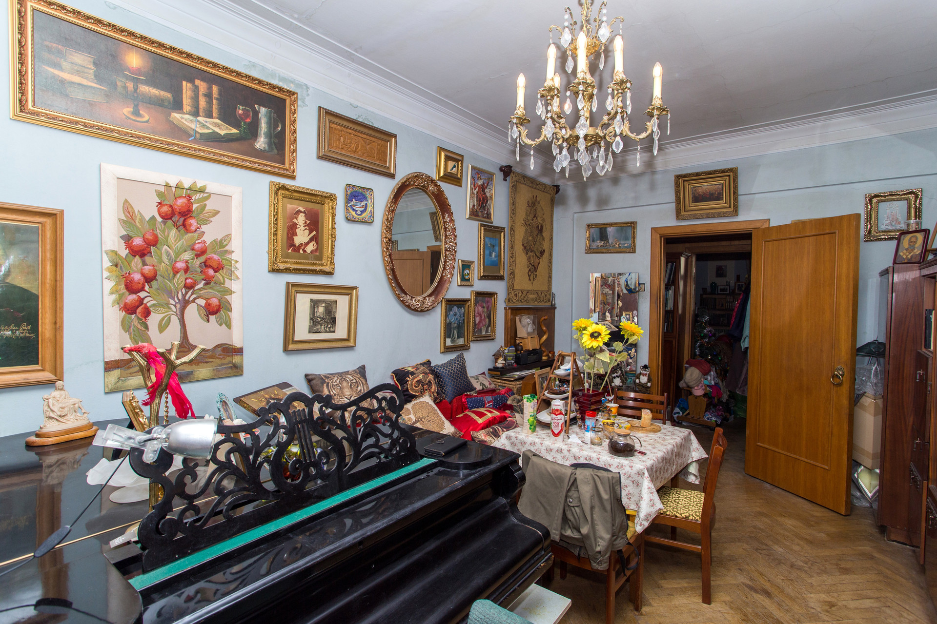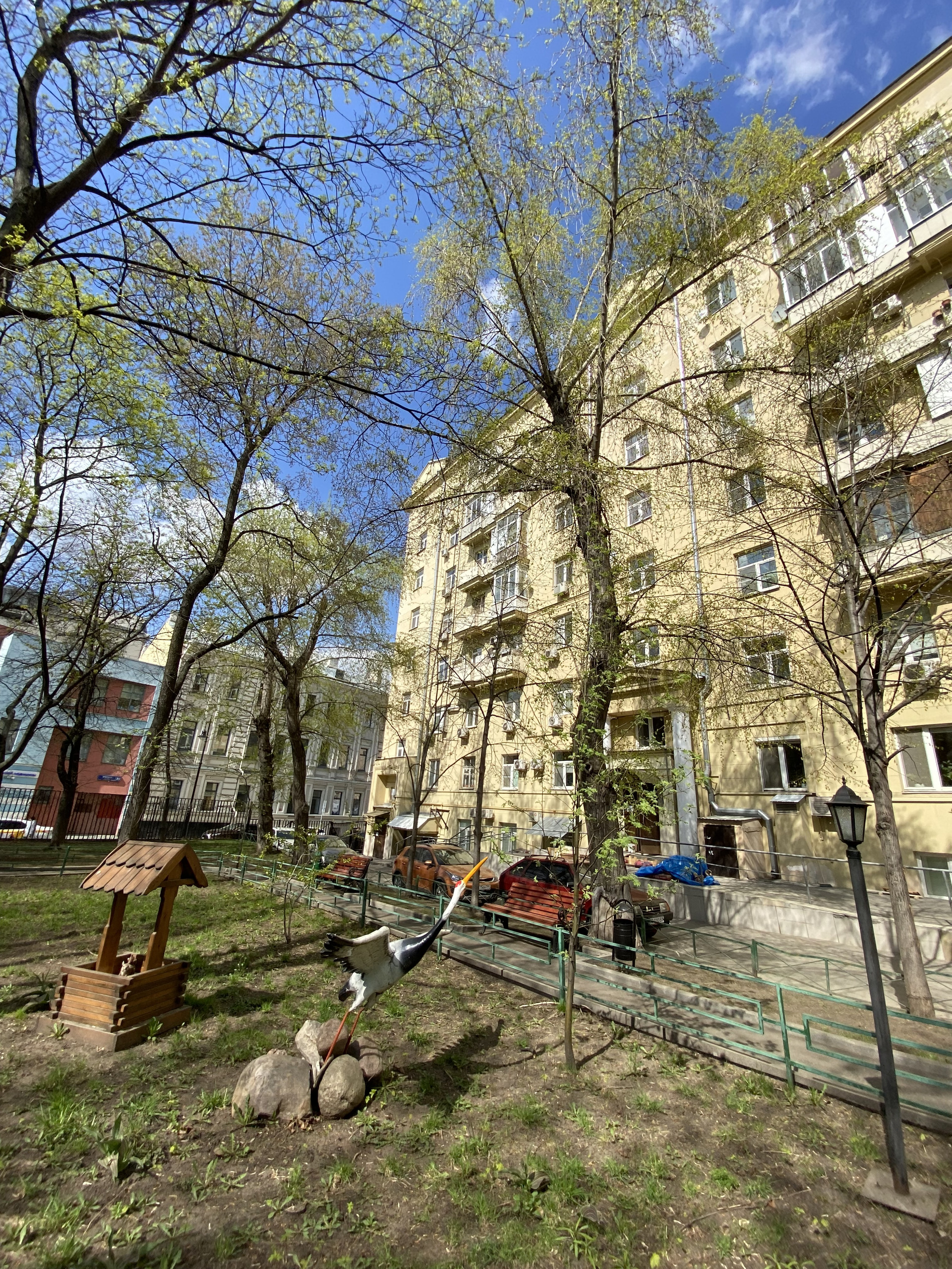Квартира расположена на последнем этаже сталинского дома, с двумя балконами, также по обе стороны дома. Из окон открывается панорамный вид на Москву и знаменитые сталинские высотки. Двор закрытый, с благоустроенной детской площадкой, прекрасными цветущими палисадниками и парковкой для жильцов дома. Глаз радуется красоте и комфорту.