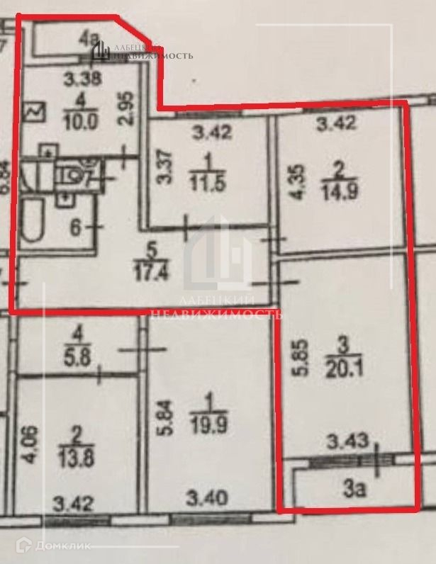 Жилая площадь 46.2 м2