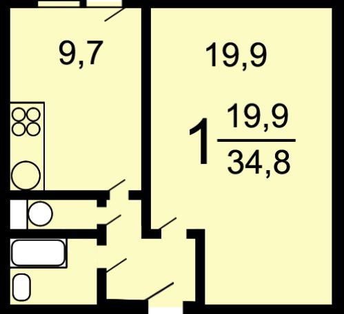 Площадь кухни 9.7 м2