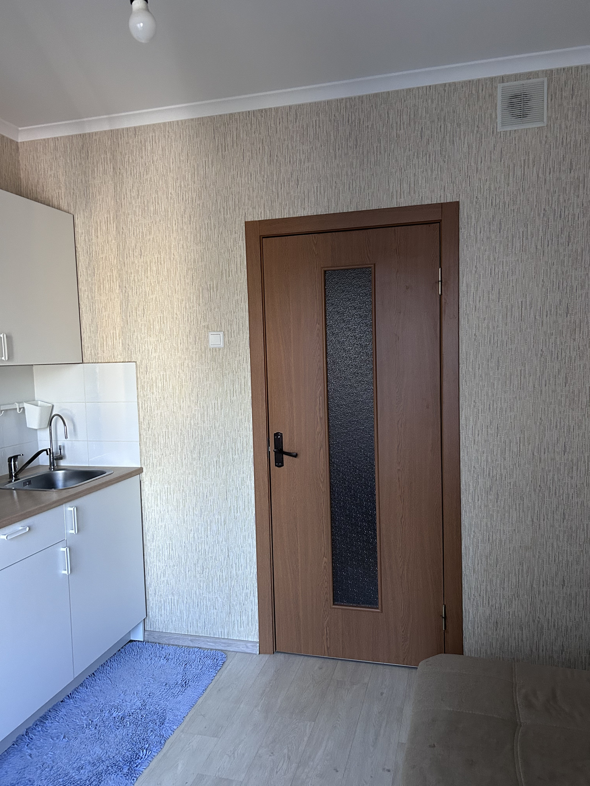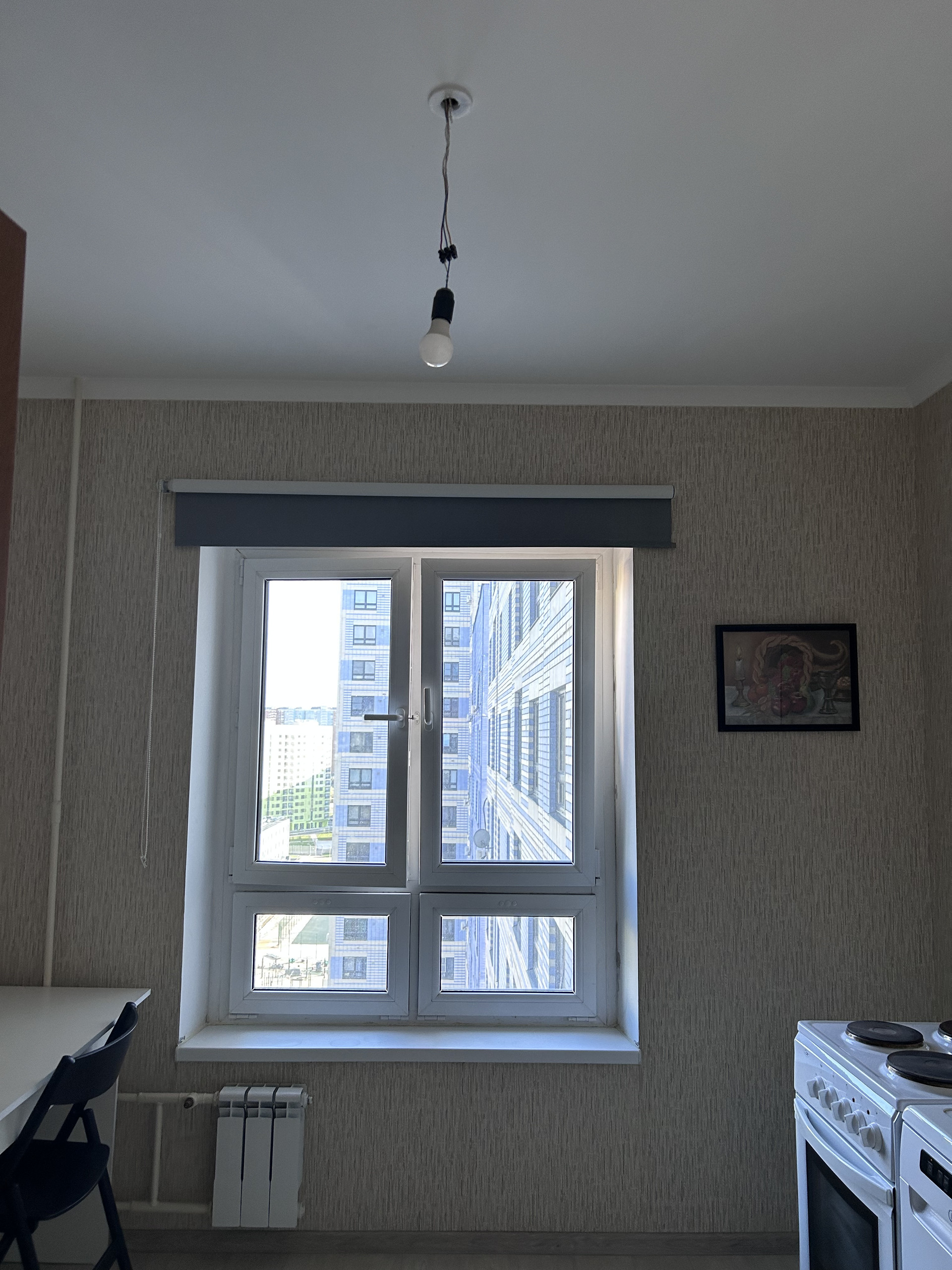 Окна квартиры выходят во двор. Входная металлическая дверь в квартиру с защитой от шума и холода, с замками высшего класса. Окна лоджии и кухни затонированы, поэтому из окон напротив квартира не просматривается, летом сохраняется прохлада. На полу в комнате и прихожей ламинат, на кухне линолеум, в ванной кафель. Прихожая просторная. Жилая комната и кухня правильной формы, удобны для зонирования.