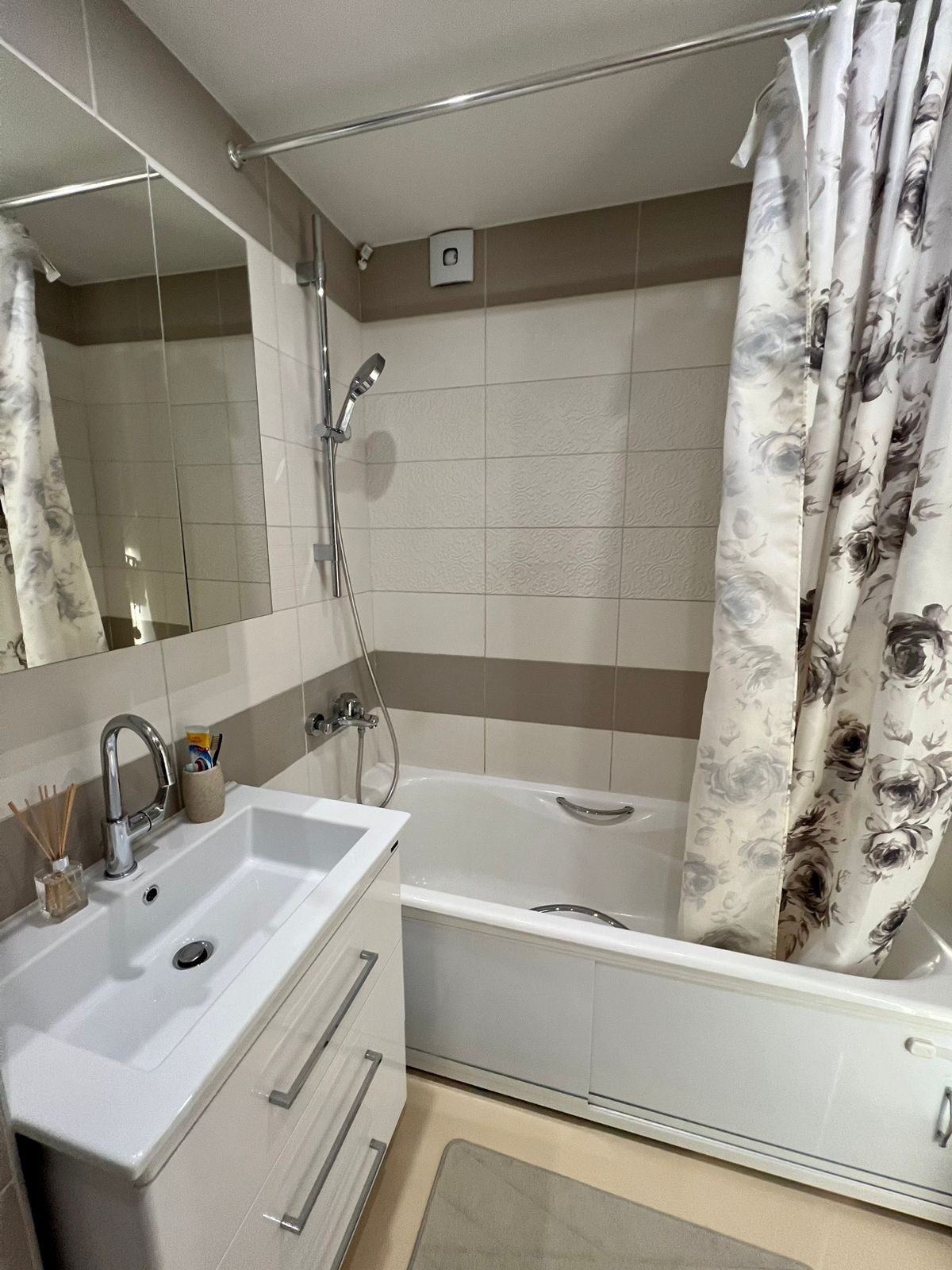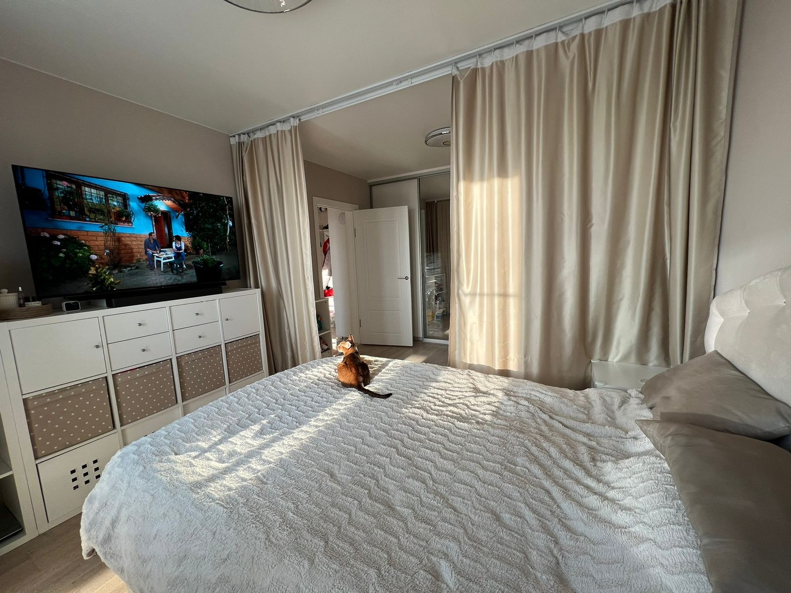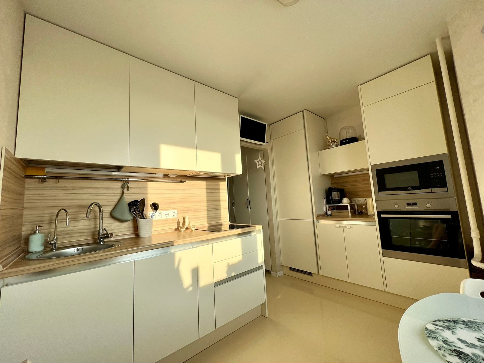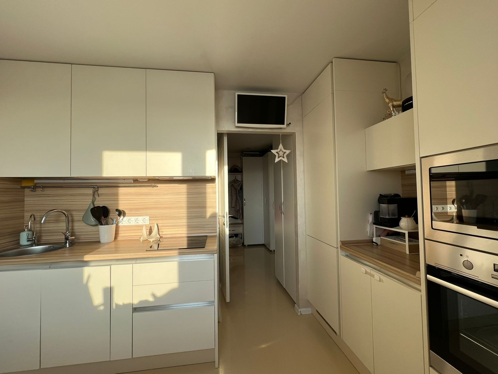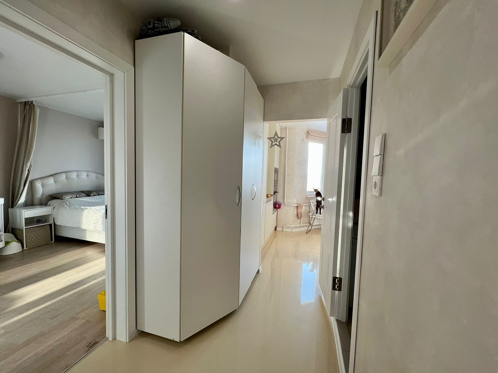 - в квартире остаётся: встроенная кухня и техника (посудомоечная машина, холодильник, варочная панель, духовой шкаф, микроволновая печь), шкафы, прихожая, кровать двуспальная, мебель в с/у.