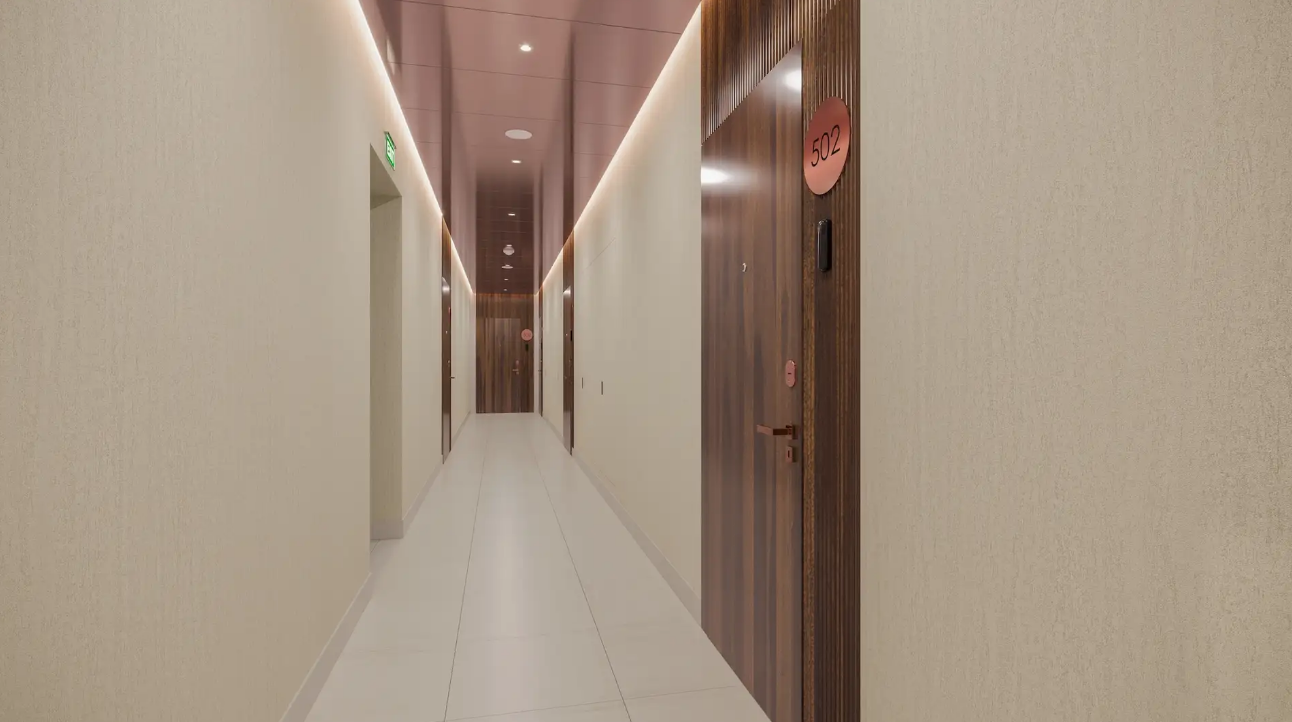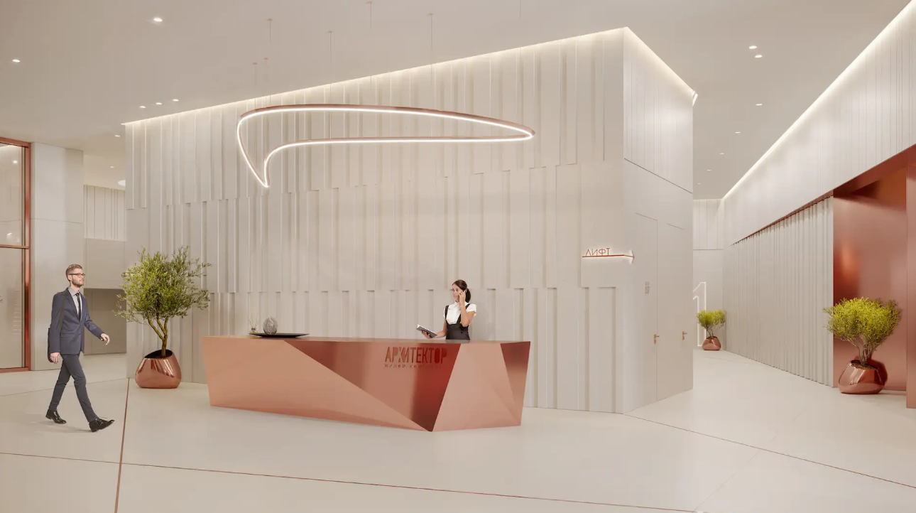 В центральном холле располагается зона ресепшен, в подземном уровне - трехуровневый паркинг для 670 автомобилей с прямым доступом из квартир любого из трех зданий комплекса. Территория ЖК «Архитектор», доступ на которую осуществляется по смарт-картам, полностью свободна от автомобилей и находится под круглосуточным видеонаблюдением.