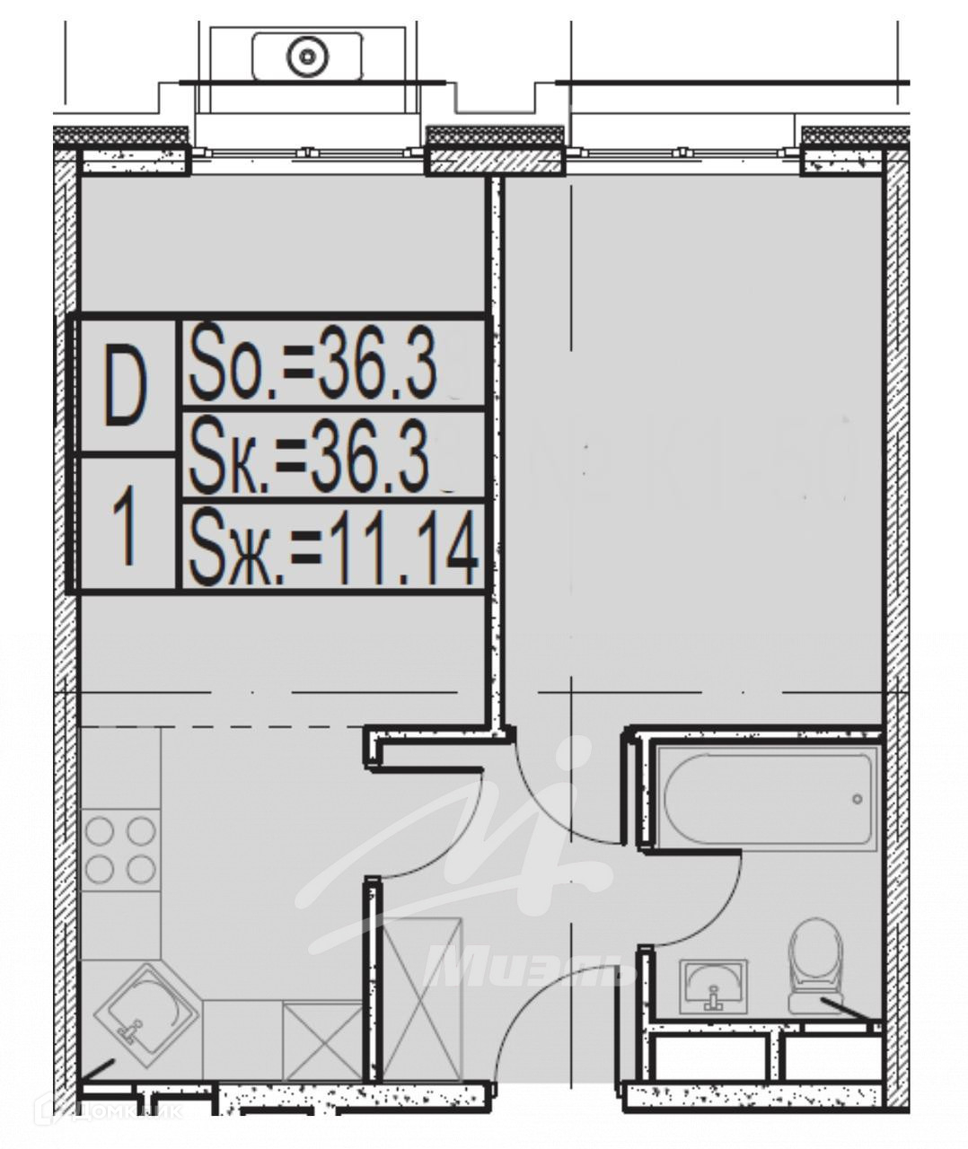 Общая площадь 36.3 м2