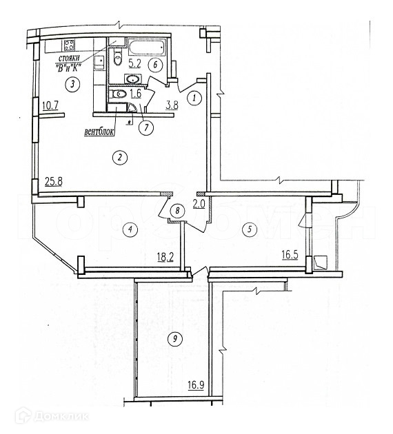 Жилая площадь 52 м2