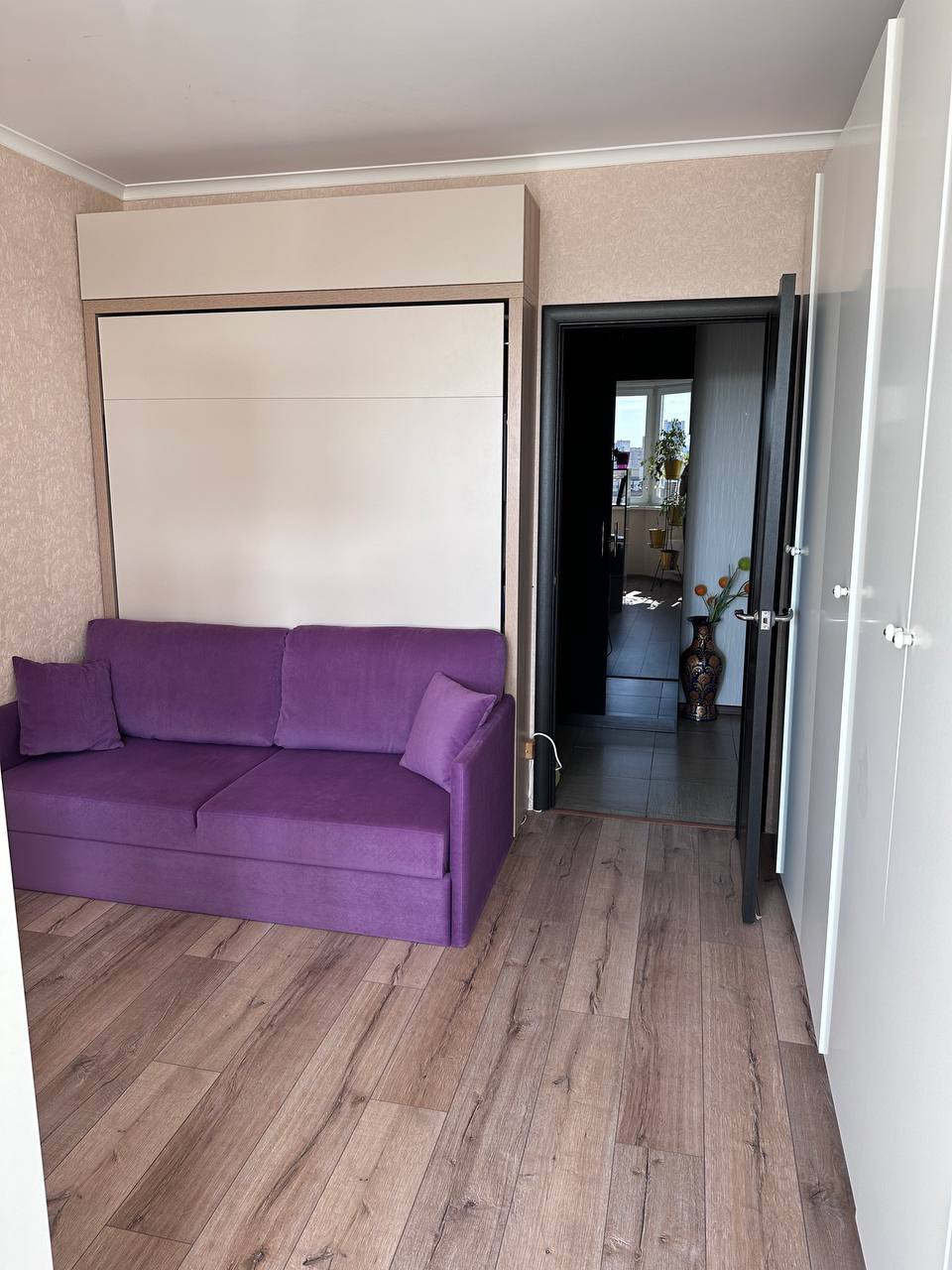 В квартире утепленная лоджия эркер, оформленная в уютную рабочую зону. Ремонт делали для себя, из качественных материалов.