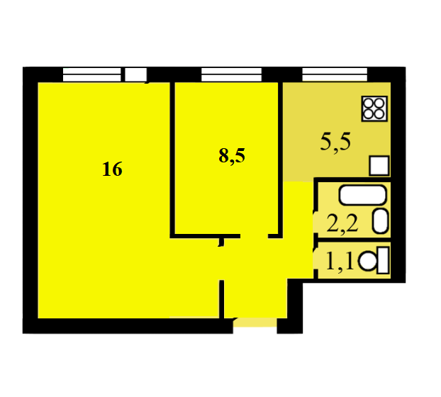 Общая площадь 38 м2