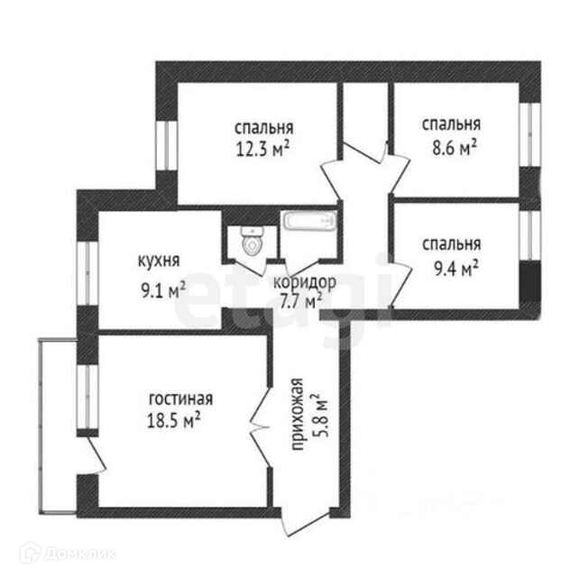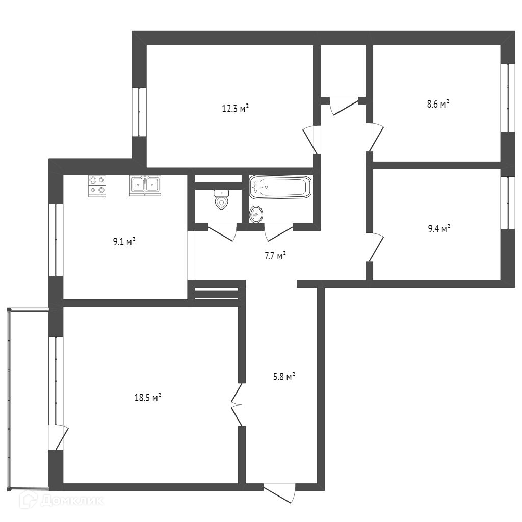 Общая площадь 84.4 м2