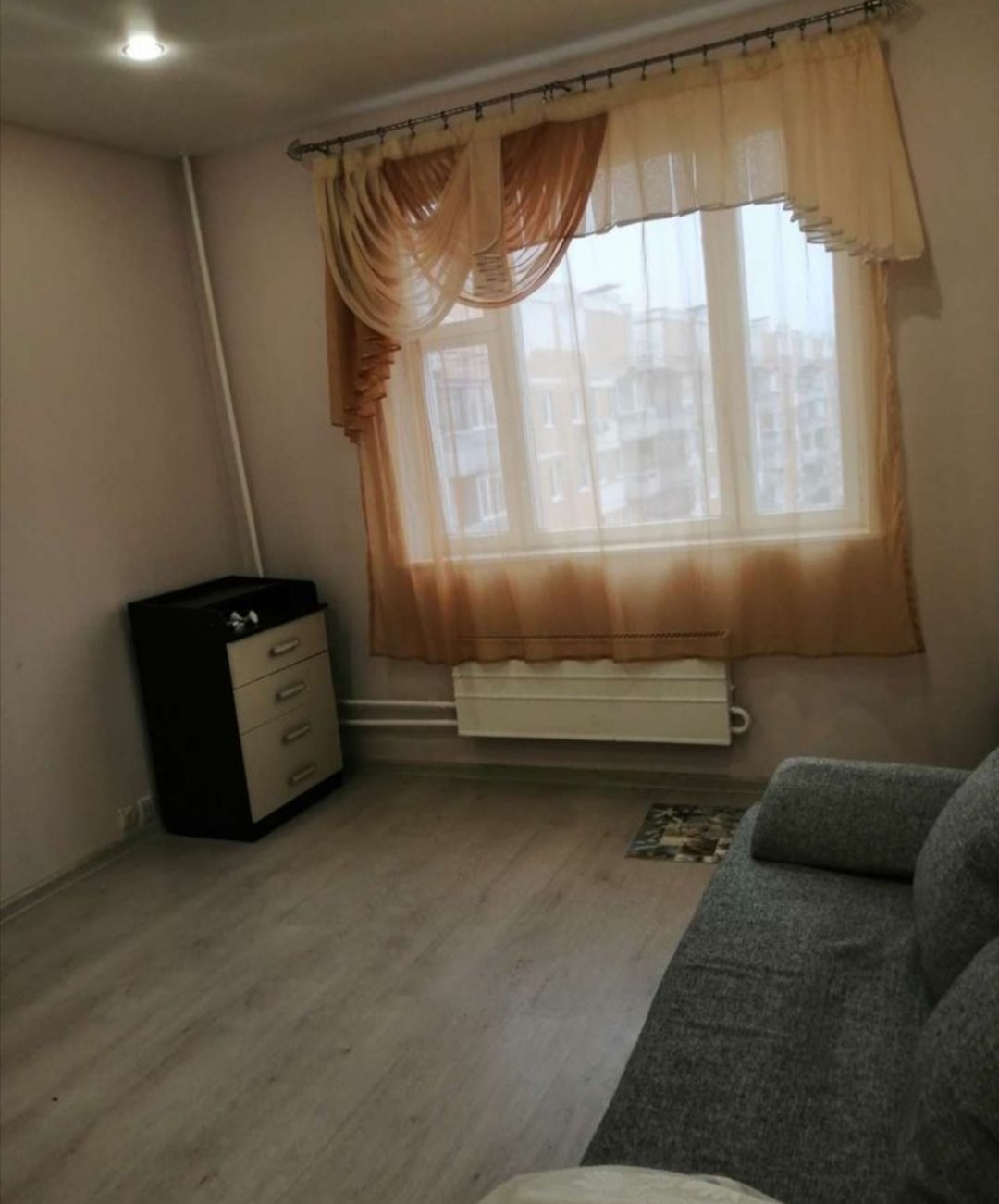 Окна обращены во двор, что обеспечивает тишину, на полу ламинат и плитка.