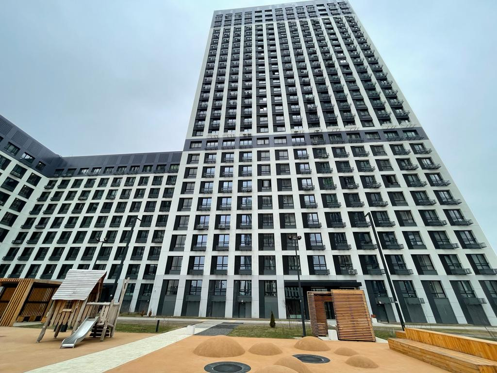 Современная архитектура со своей благоустроенной территорией, детским садом, круглосуточным охраняемым закрытым внутренним двором без машин.