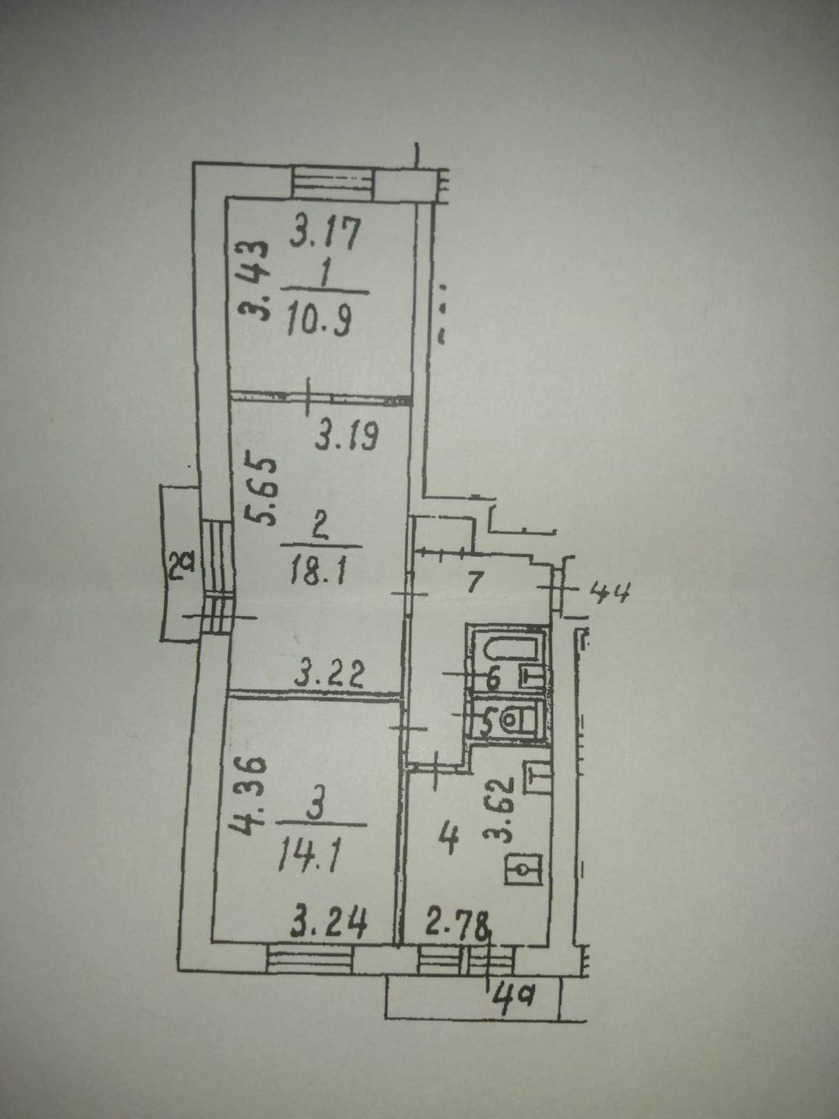 Жилая площадь 43.1 м2