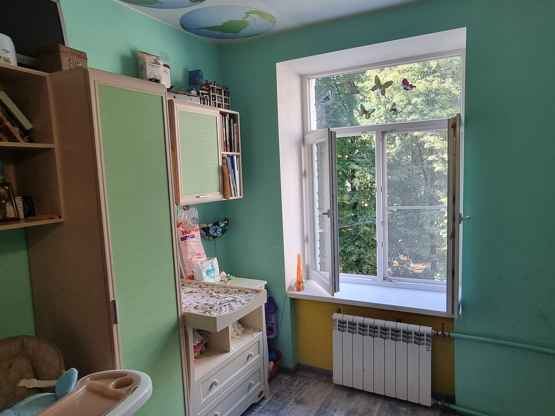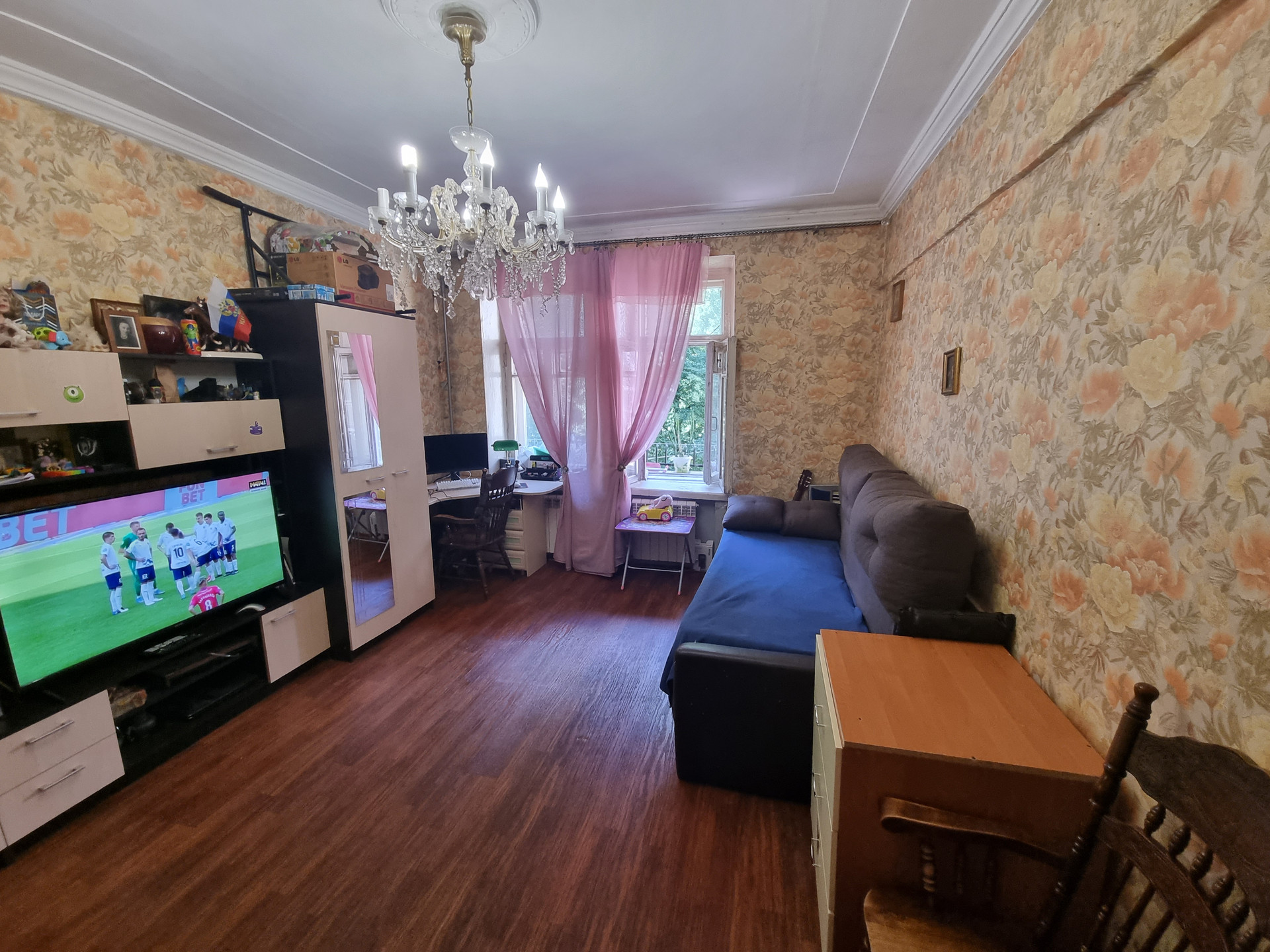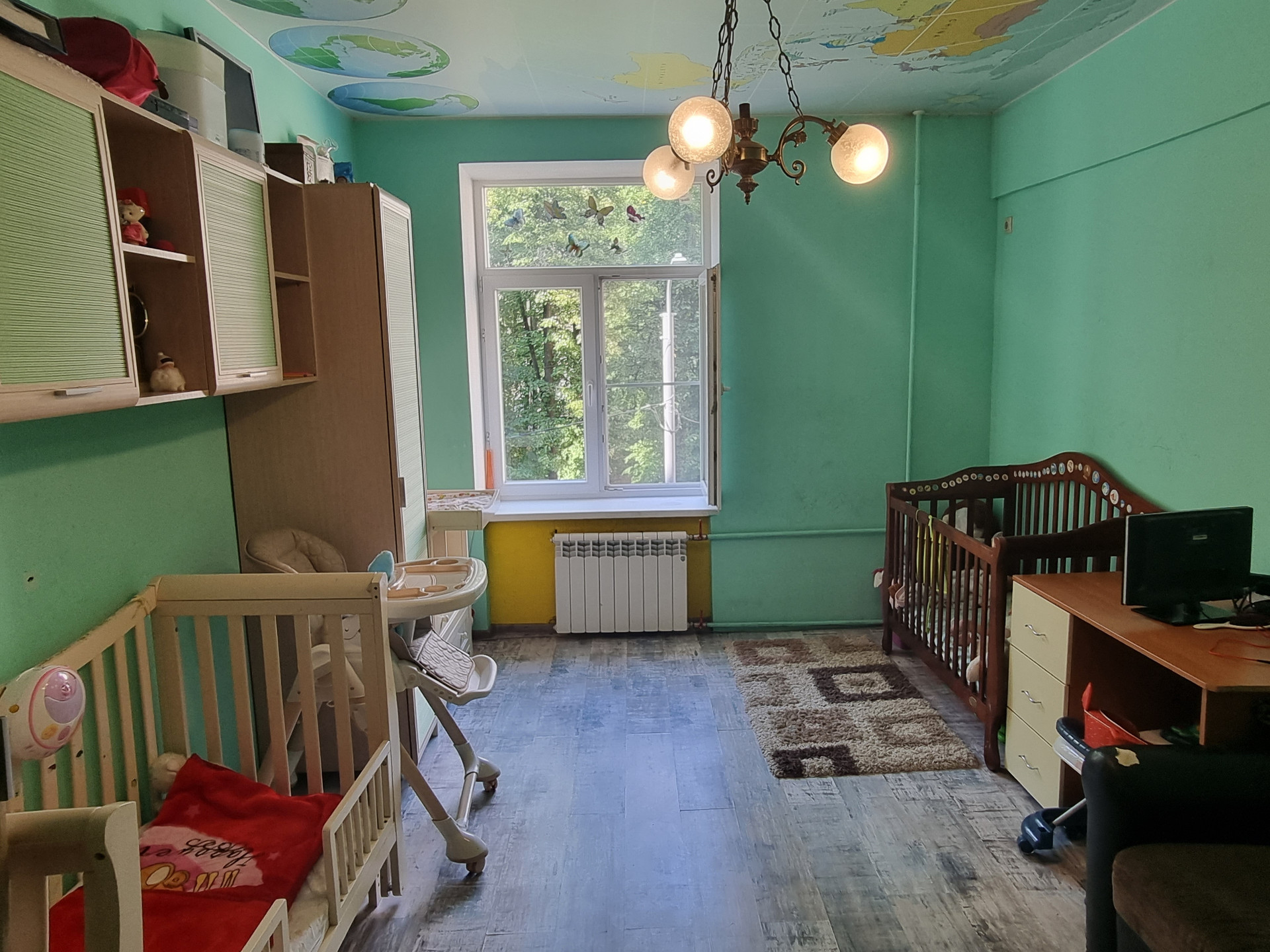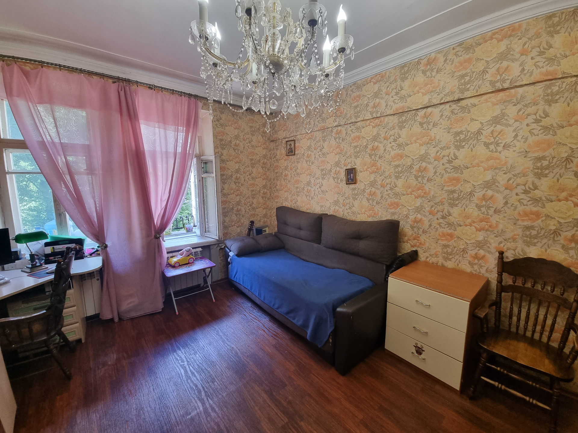 Квартира находится по факту на третьем этаже(по документам на втором), первый этаж высокий-цокольный. Окна выходят в тихий двор с детской площадкой. Квартира в хорошем жилом состоянии, в большей части сделан свежий качественный ремонт, заменены все коммуникации, обновлению подлежит кухня и санузел.