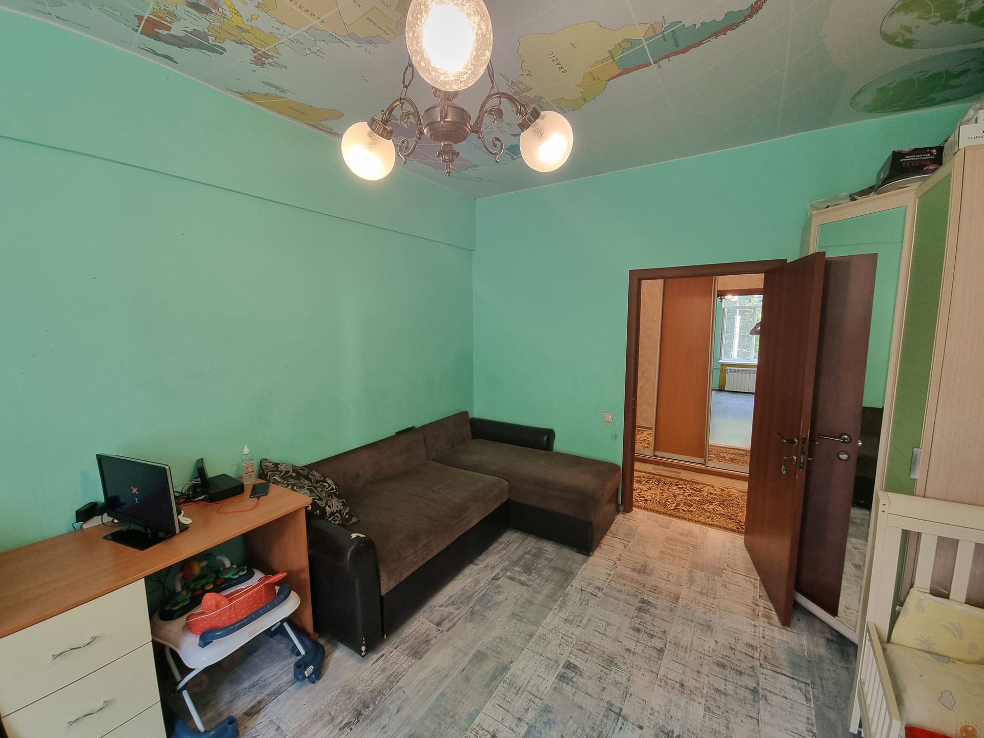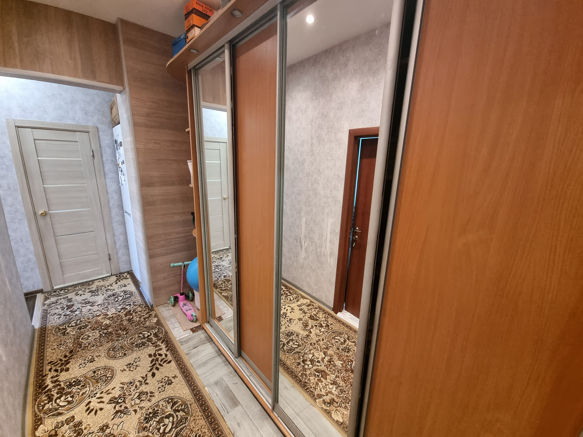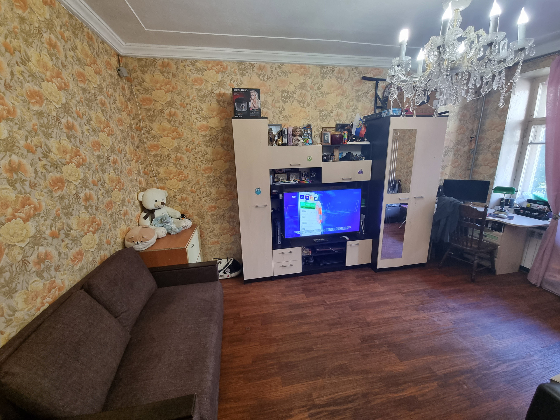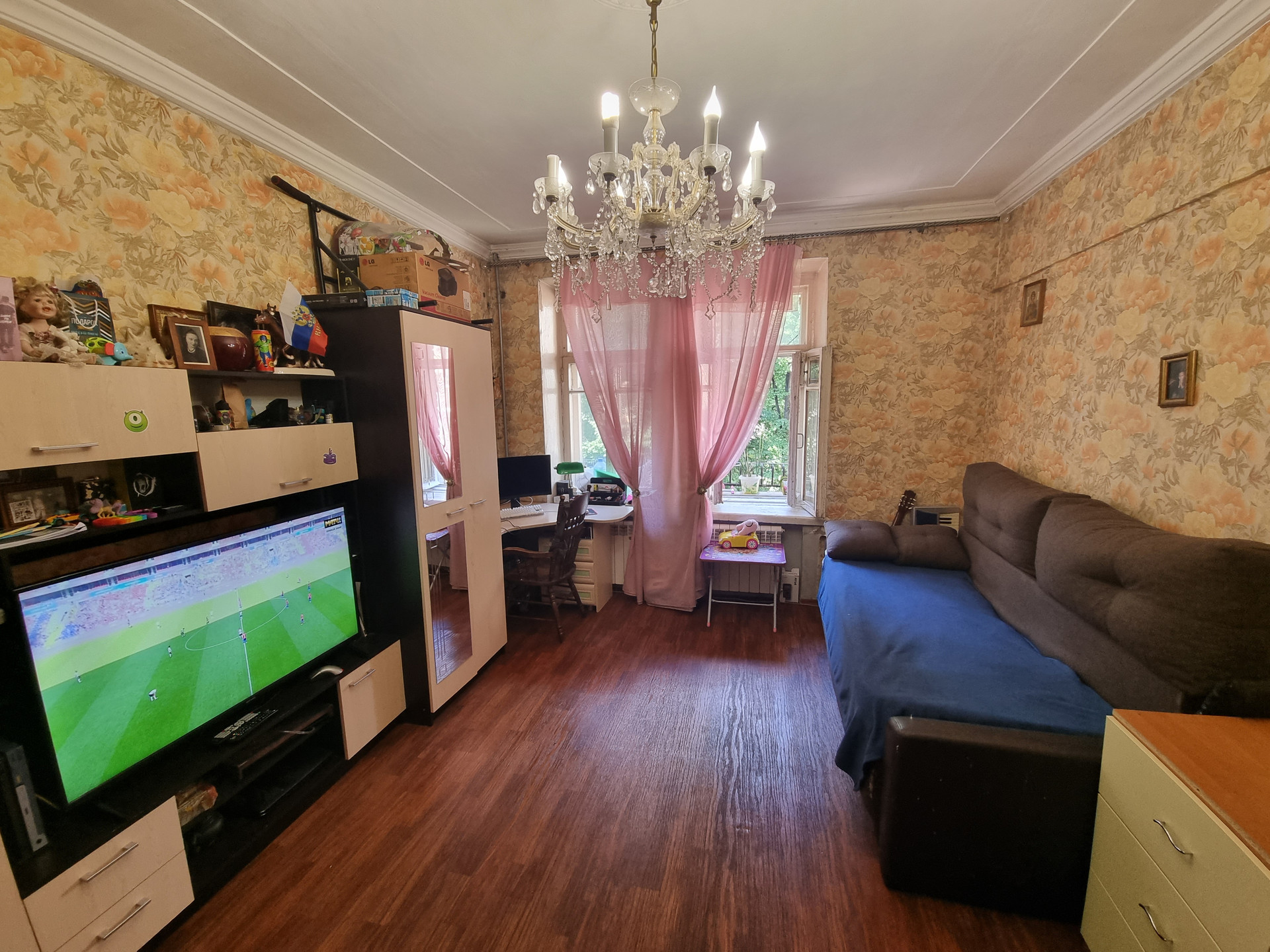 Квартира находится по факту на третьем этаже(по документам на втором), первый этаж высокий-цокольный. Окна выходят в тихий двор с детской площадкой. Квартира в хорошем жилом состоянии, в большей части сделан свежий качественный ремонт, заменены все коммуникации, обновлению подлежит кухня и санузел.