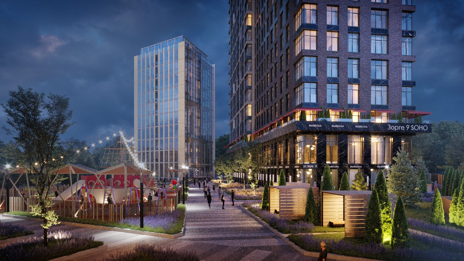 Все необходимые магазины и услуги прямо на территории комплекса «Зорге 9»: кафе, магазины, фитнес-клуб с ЗАКРЫТЫМ бассейном, салон красоты.