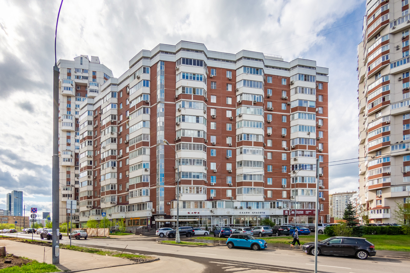 Практически прямо под окнами детский сад и школа, аптеки, несколько магазинов и кафе.
