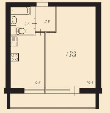 Общая площадь 34.5 м2