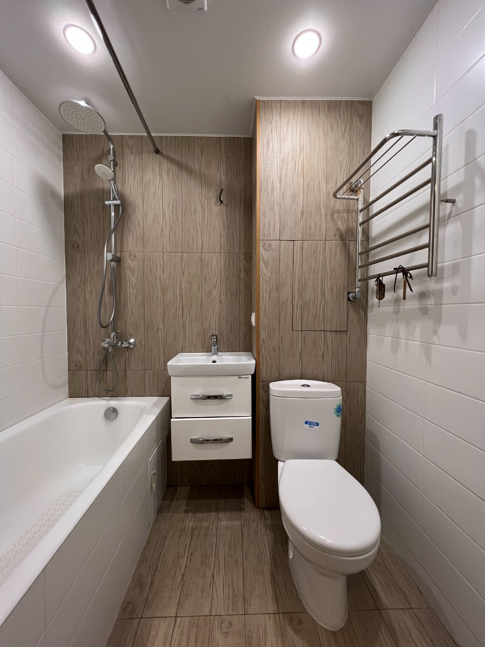 Ванна: сантехника Roca и Grohe, обновлен полотенцесушитель и установлены счетчики горячей и холодной воды.