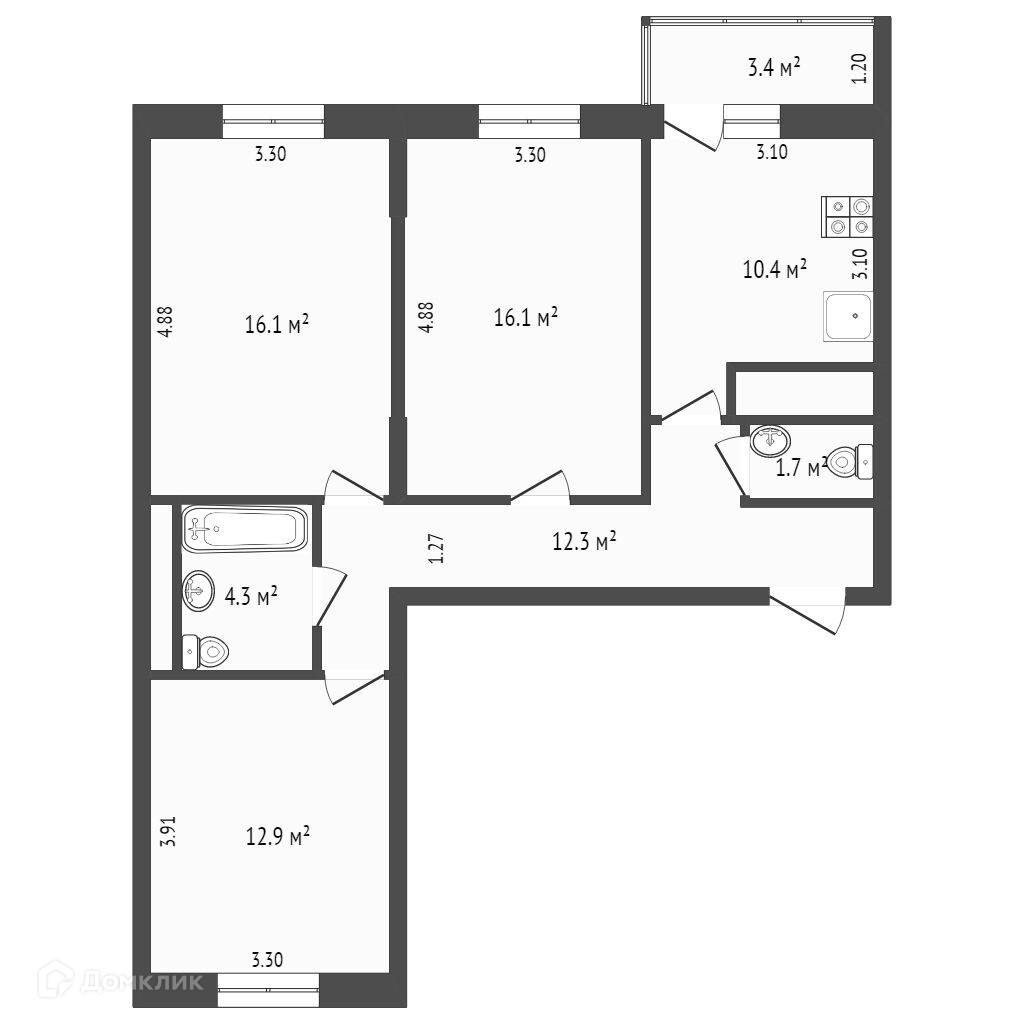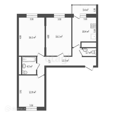 Количество комнат 3
