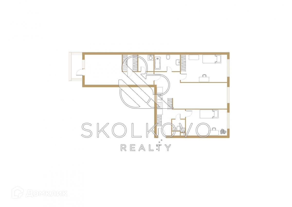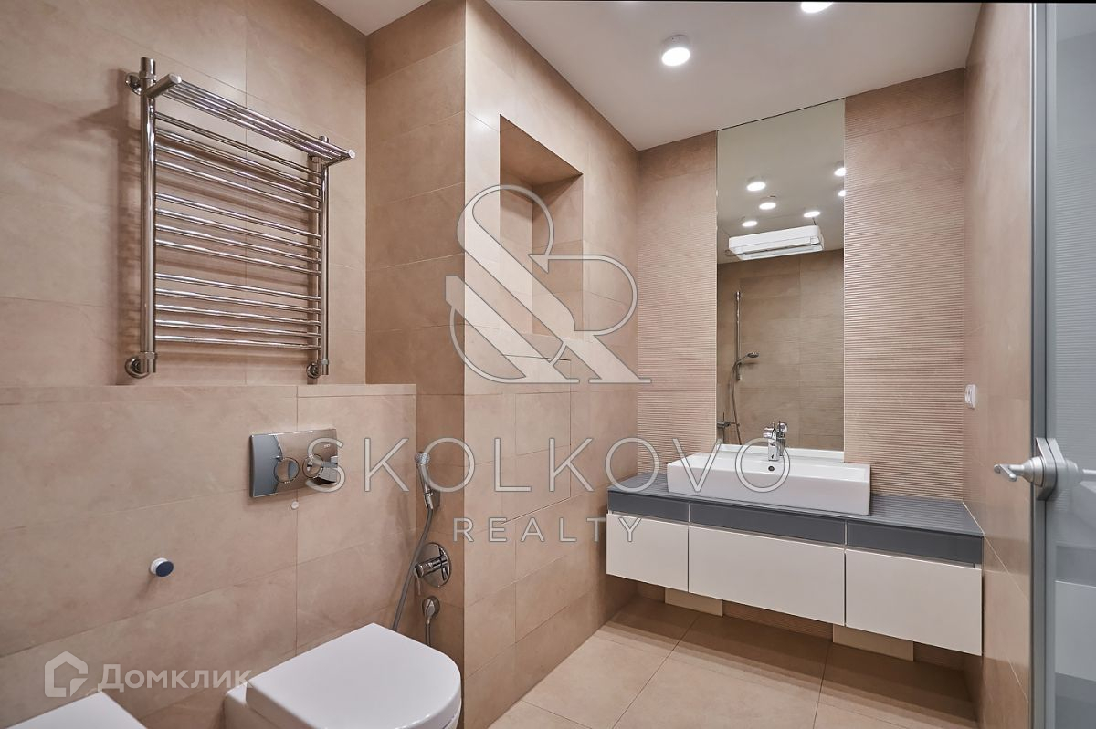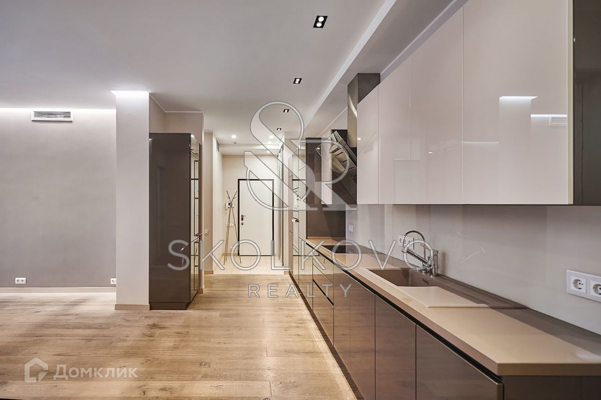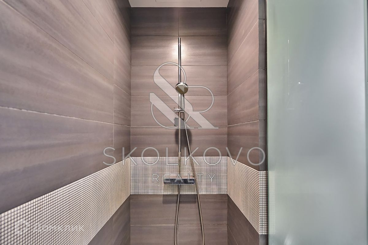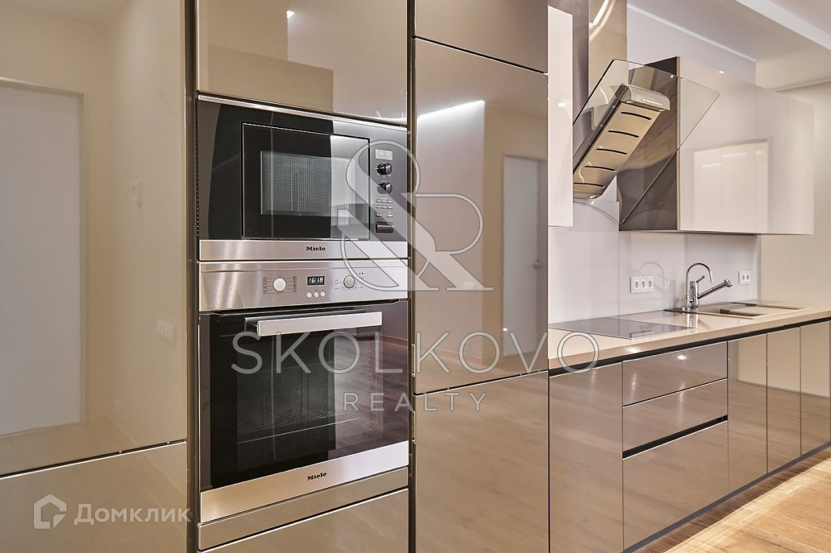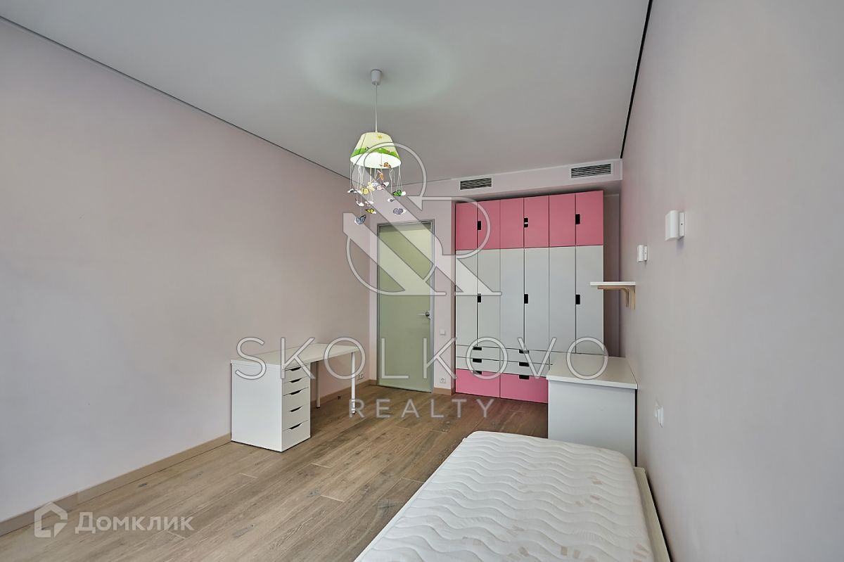 Планировка включает в себя мастер-спальню с гардеробной комнатой, 2 детские спальни, кухню, объединенную с гостиной, 2 санузла, прачечную. Квартира оснащена мебелью и бытовой техникой от бренда Miele. В каждой комнате установлены кондиционеры, система теплых полов, приточно-вытяжная система. Есть возможность подключить охранную сигнализацию к квартире.