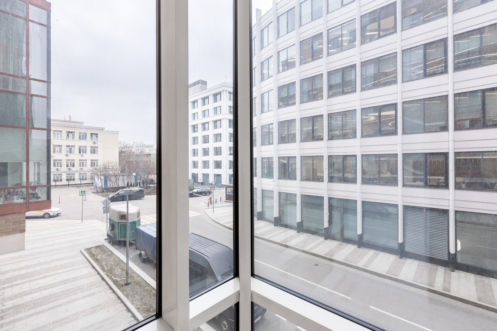 Окна выходят во двор и переулок. С учетом делового окружения - очень тихо