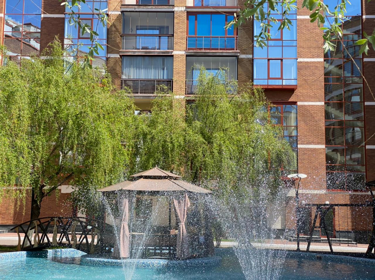 Собственная ухоженная территория (с фонтаном и беседкой), ограниченная периметром дома