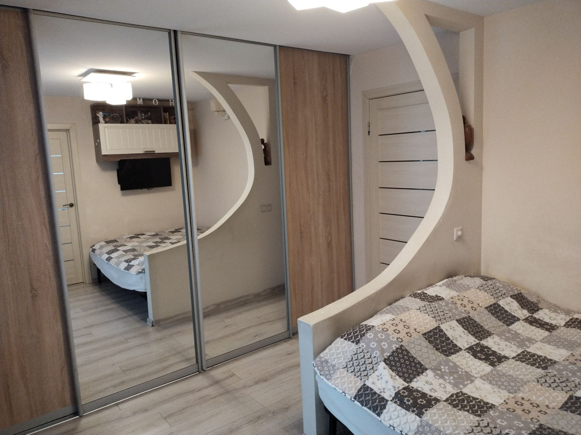 В квартире сделан капитальный ремонт с заменой стен и электрики, также имеется тёплый пол в прихожей, холле и кухни. Окна и балкон застелены пластиковыми стеклопакетами. Окна выходят во двор. В квартире остаётся вся техника и мебель. Заезжай и живи комфортно.