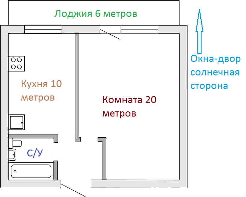 Балкон, лоджия 1 балкон