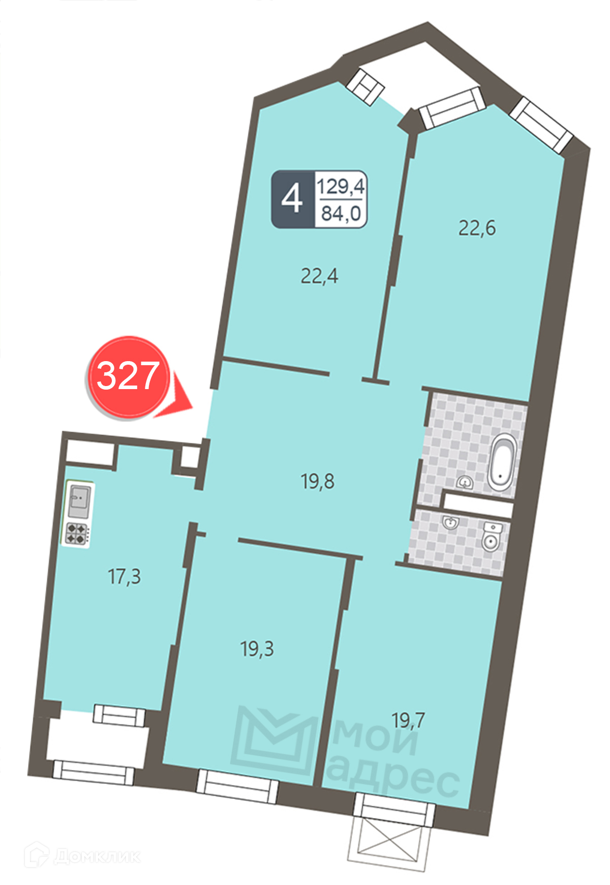 Общая площадь 129.4 м2