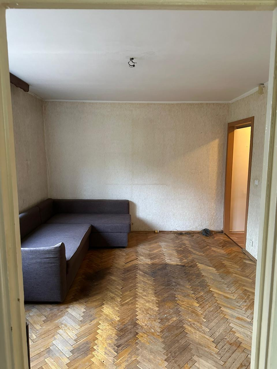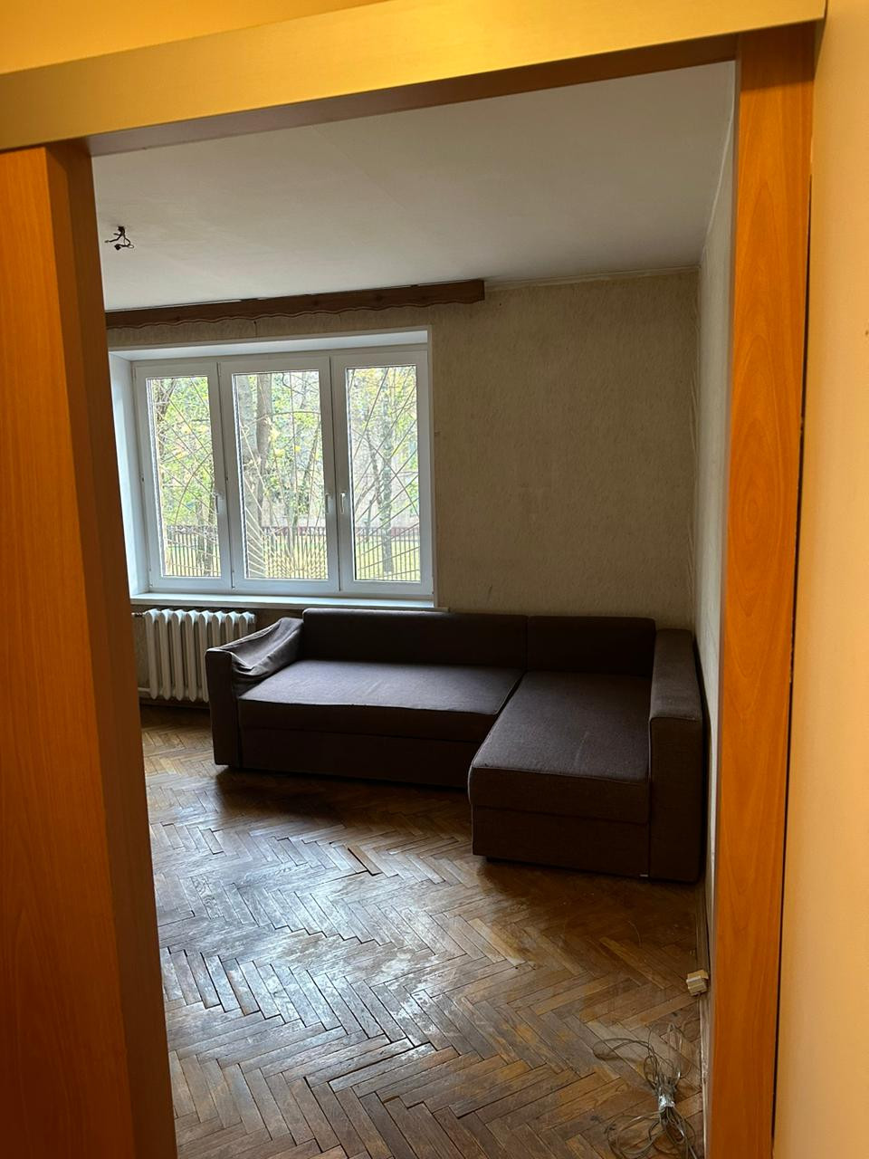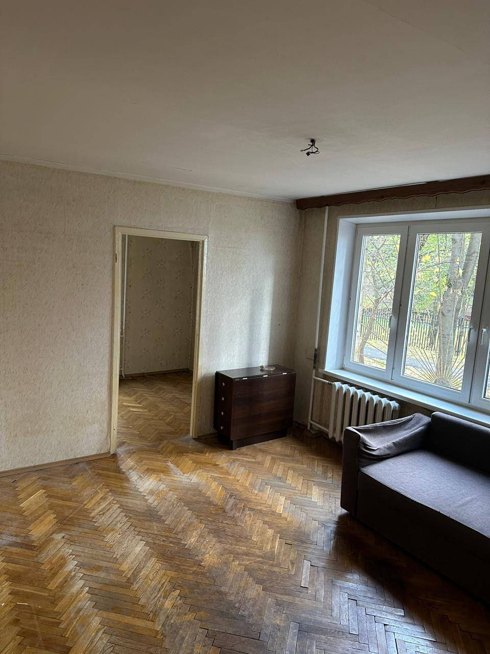 Квартира в жилом состоянии, кухня -7,4 кв. м. В комнатах на полу паркет, на кухне линолеум. Выполнен свежий ремонт в коридоре. Совмещенный С/У, оборудован качественной сантехникой, установлены приборы учета, на горячее и холодное водоснабжение. Решетки на окнах.