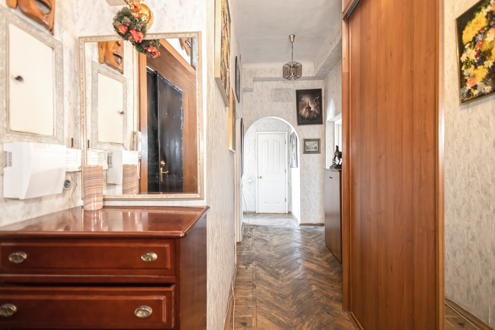 Заменена проводка, установлен современный распределительный щиток, новые радиаторы, качественные стеклопакеты, счетчики воды, имеется система кондиционеров. Собственники бережно сохранили аутентичный советский паркет, который требует лишь циклевки и окрашивания.