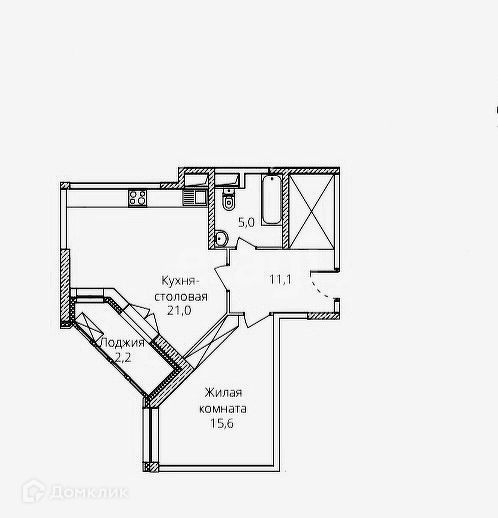 Общая площадь 55 м2