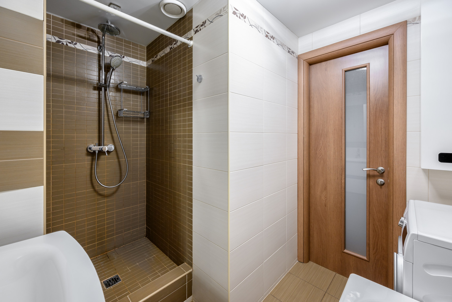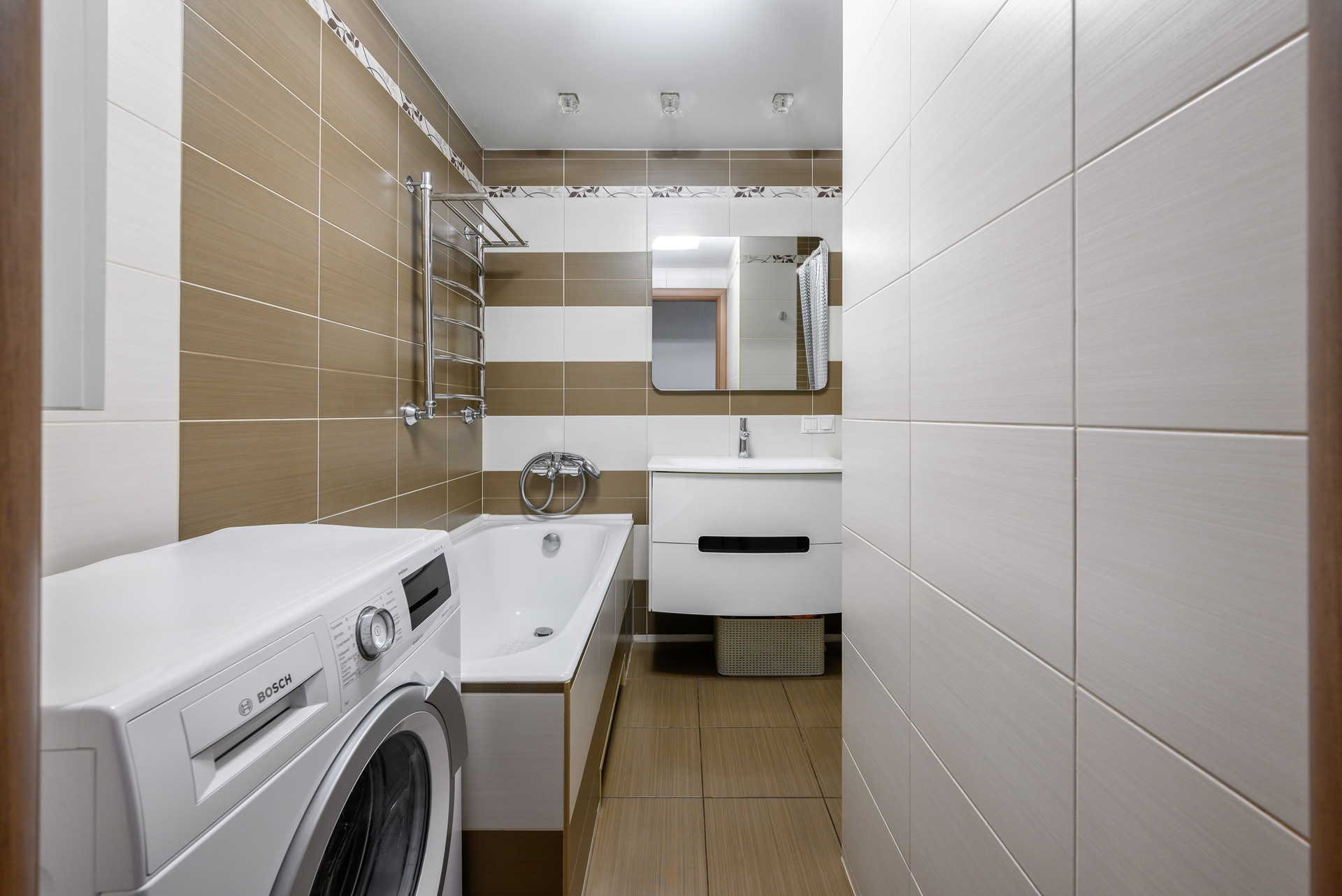 Удачная планировка ванной комнаты позволила установить и ванну, и душевую кабину – что удовлетворит потребности каждого члена семьи, будь то бодрящий утренний душ или расслабляющие вечера с магниевой солью и свечами