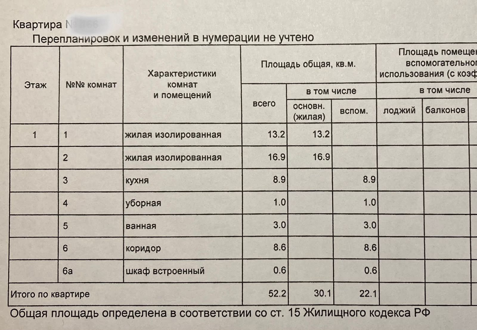 Общая площадь 52 м2