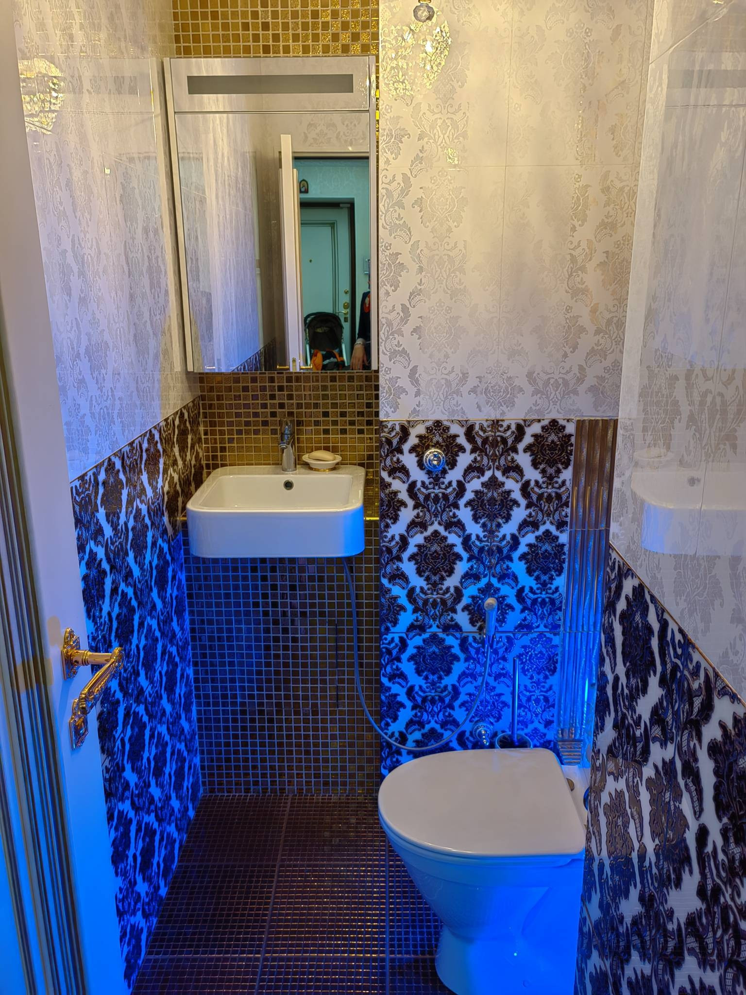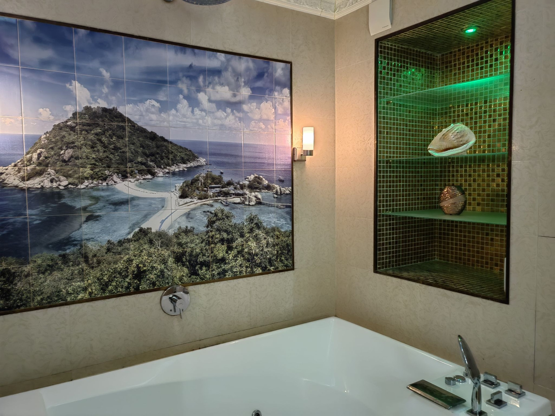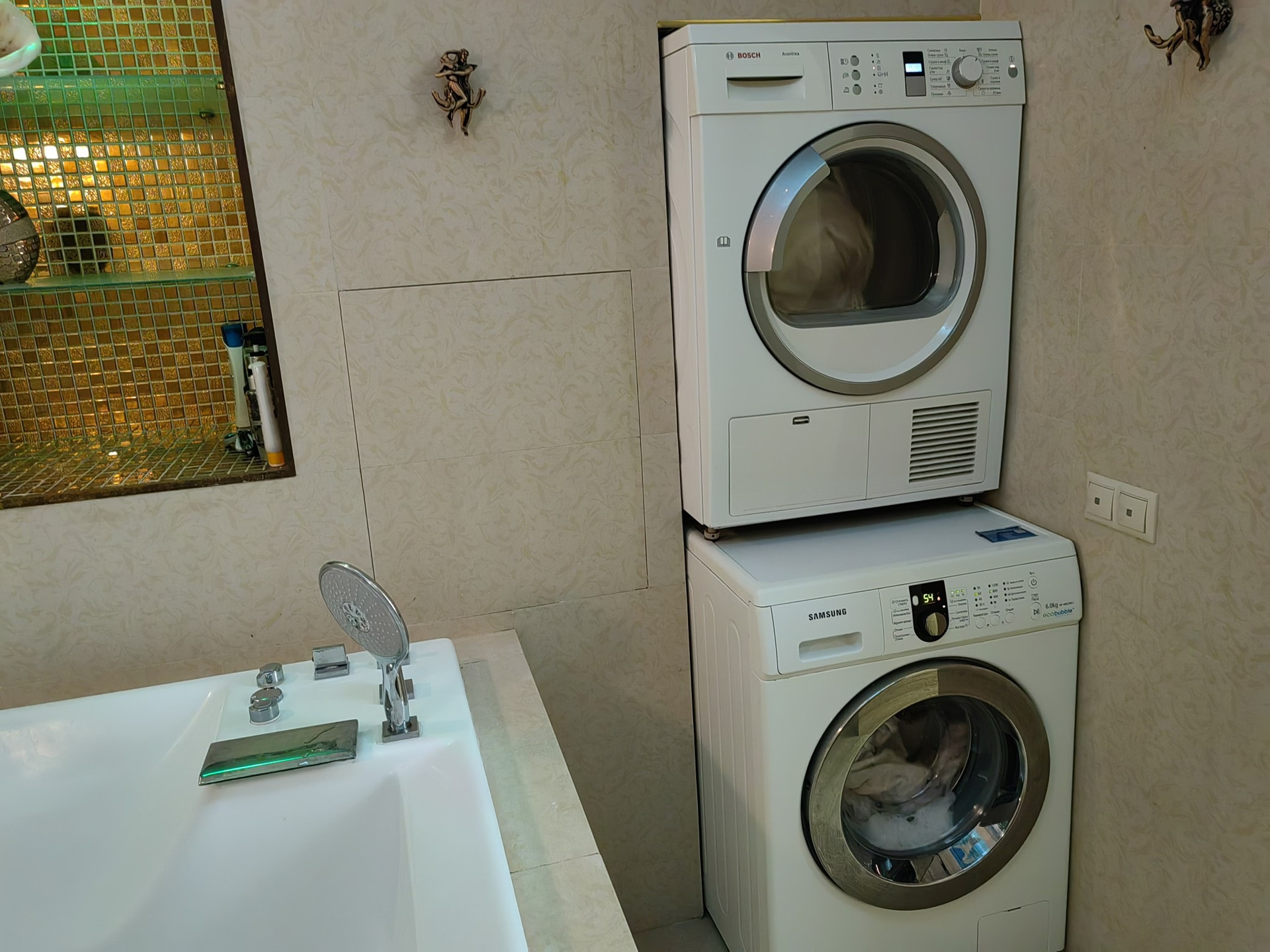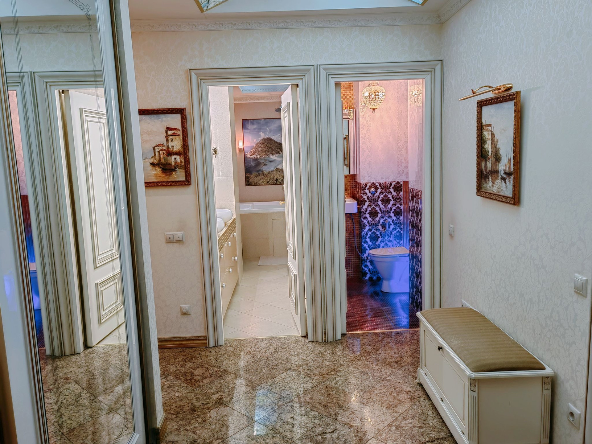 Санузел раздельный, выложен дорогой плиткой, джакузи.