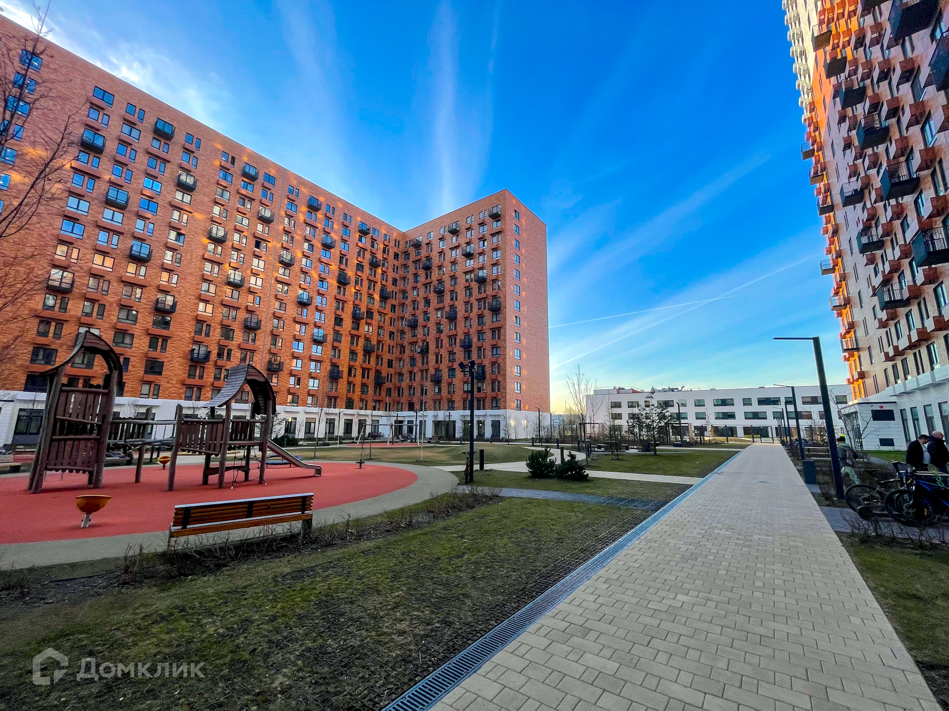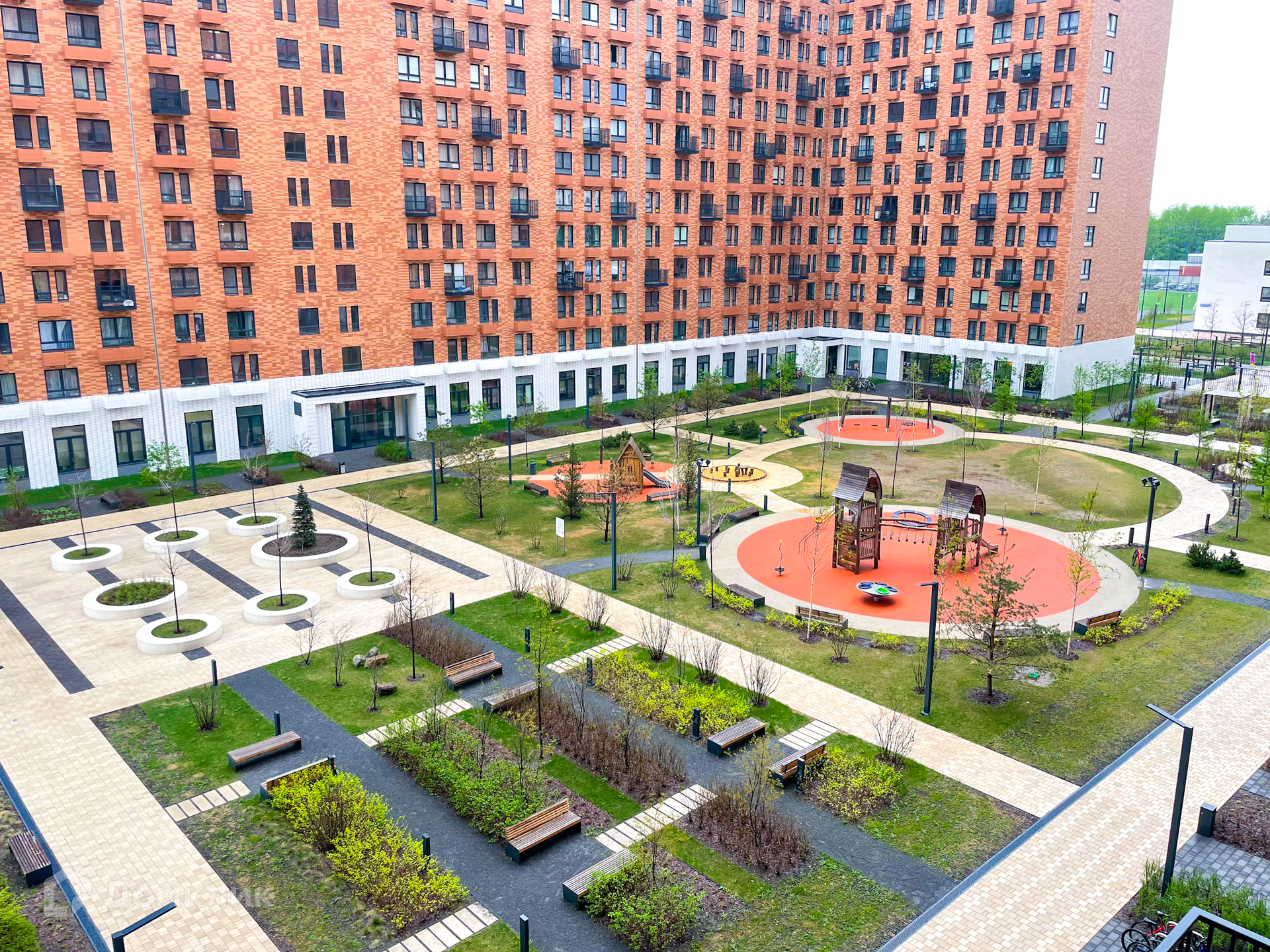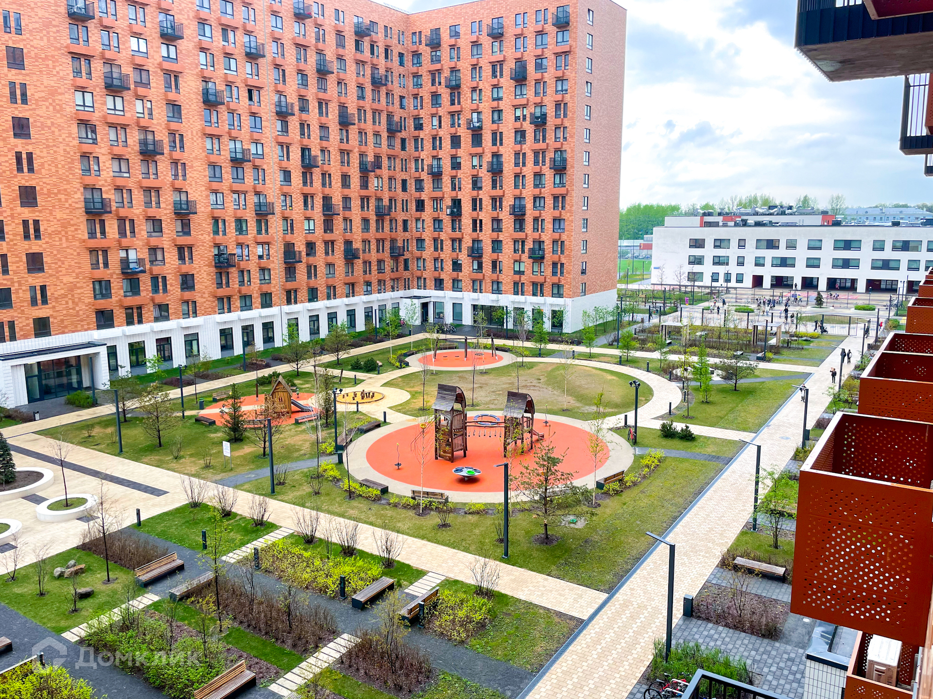 Красивый закрытый внутренний двор с детской площадкой располагает к уютным семейным прогулкам. Идея создания данного комплекса - так называемый «город в городе». Здесь есть все для комфортного проживания: новая современная школа и детский сад, кафе, рестораны, салоны красоты, аптеки, пункты выдачи заказов Озон/Яндекс/Wildberries. Через дорогу находится большой торговый центр