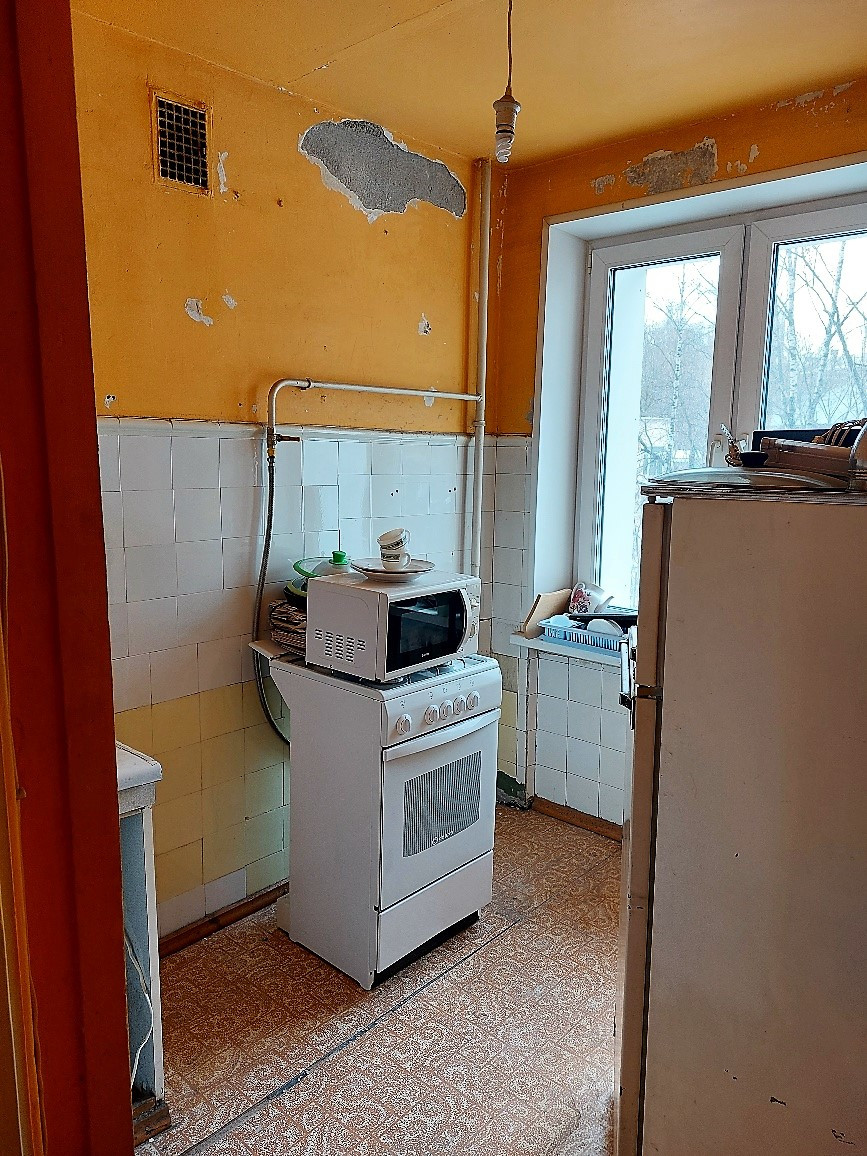 Продаю 1-комн. квартиру общей площадью 33,1 кв.м, комната 21,4 кв.м, кухня 5,2 кв.м, на 3-м этаже 9-ти этажного блочного дом, с/у совмещённый.