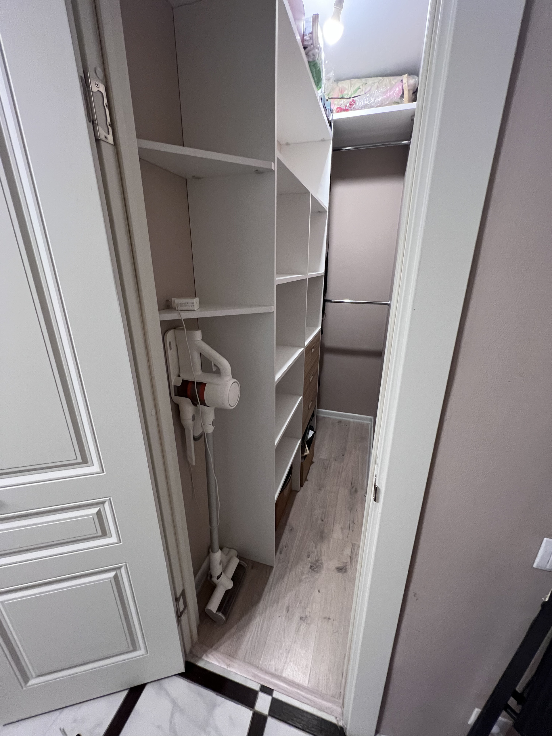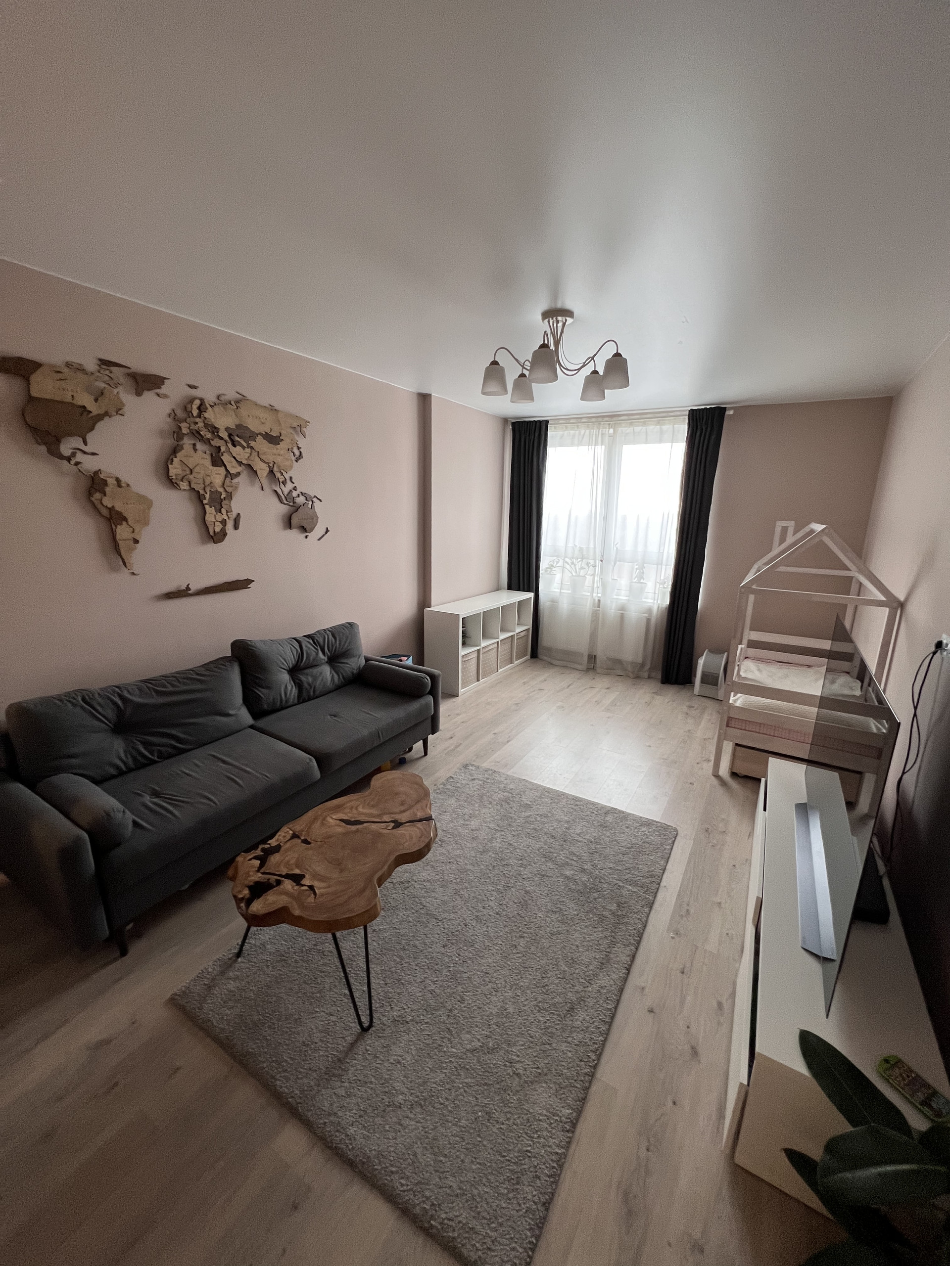 В квартире удачная планировка: большая прихожая, кухня-гостиная, просторная комната и оборудованная гардеробная.