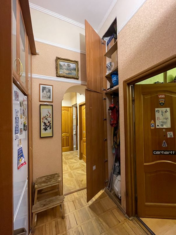 Квартира в собственности одной семьи с 1993г.Кирпичный дом с ж/б перекрытиями расположен в шаговой доступности от трех ст.м. Уютный двор со шлагбаумом и видеонаблюдением. Квартира с изолированными комнатами(21-16-16-10) и двумя балконами(север-юг).Дополнительный бонус планировки: просторная темная комната(кладовка) и вертикальный альков. Паркет, пластиковые окна, деревянные межкомнатные двери, итальянская сантехника, добротная мебель. Высота потолков-3,6м.
