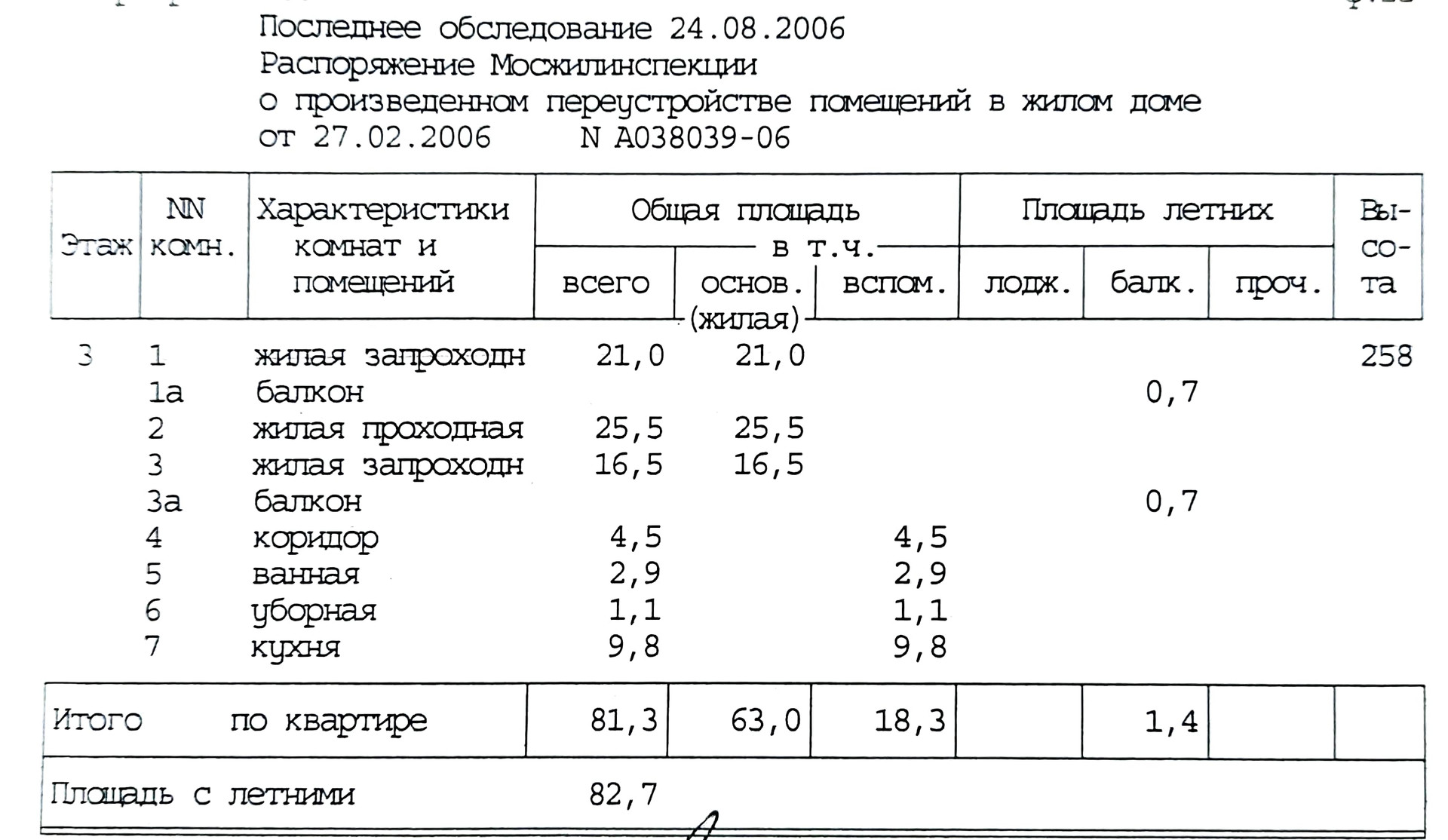 Общая площадь 82.7 м2