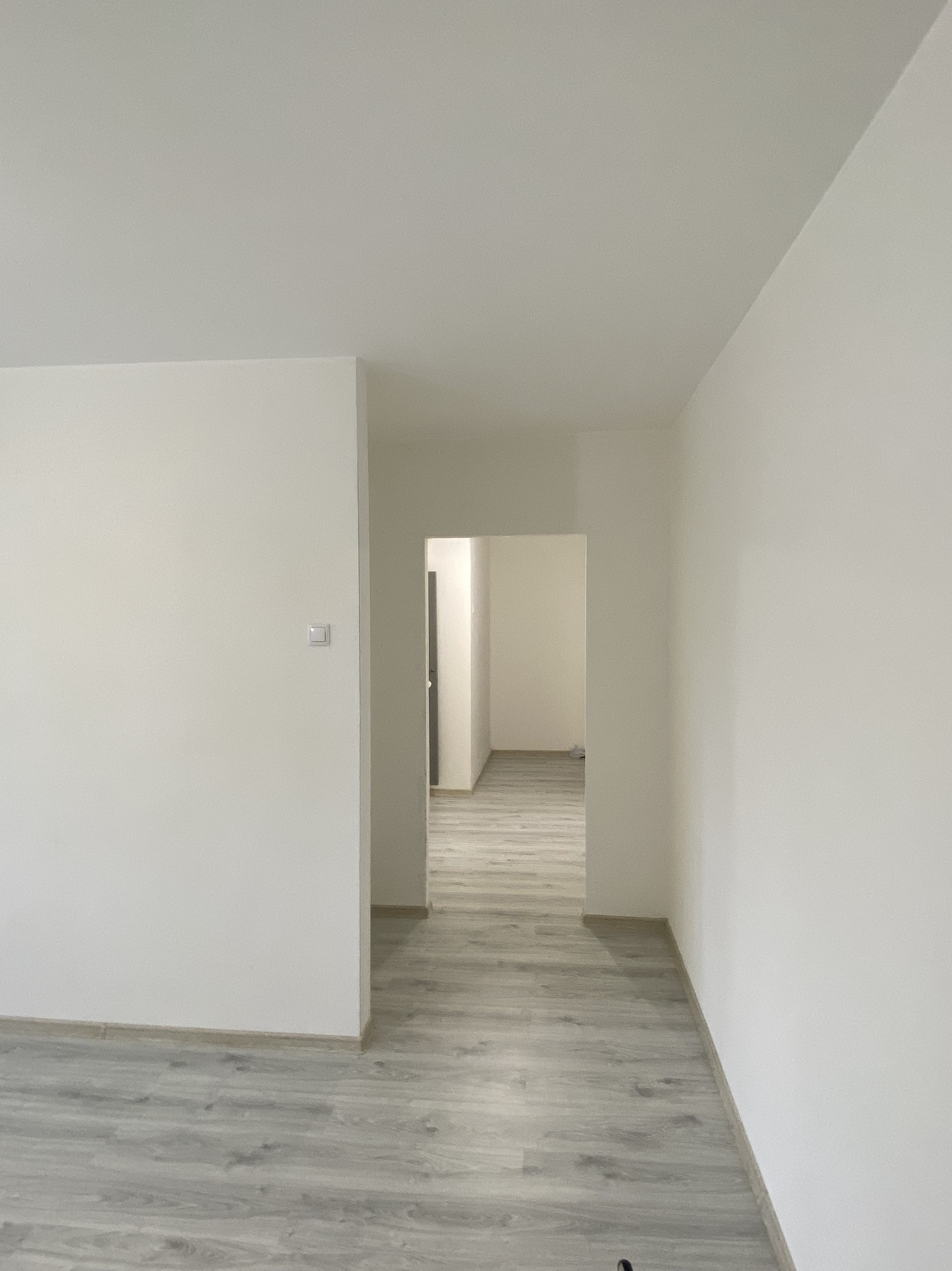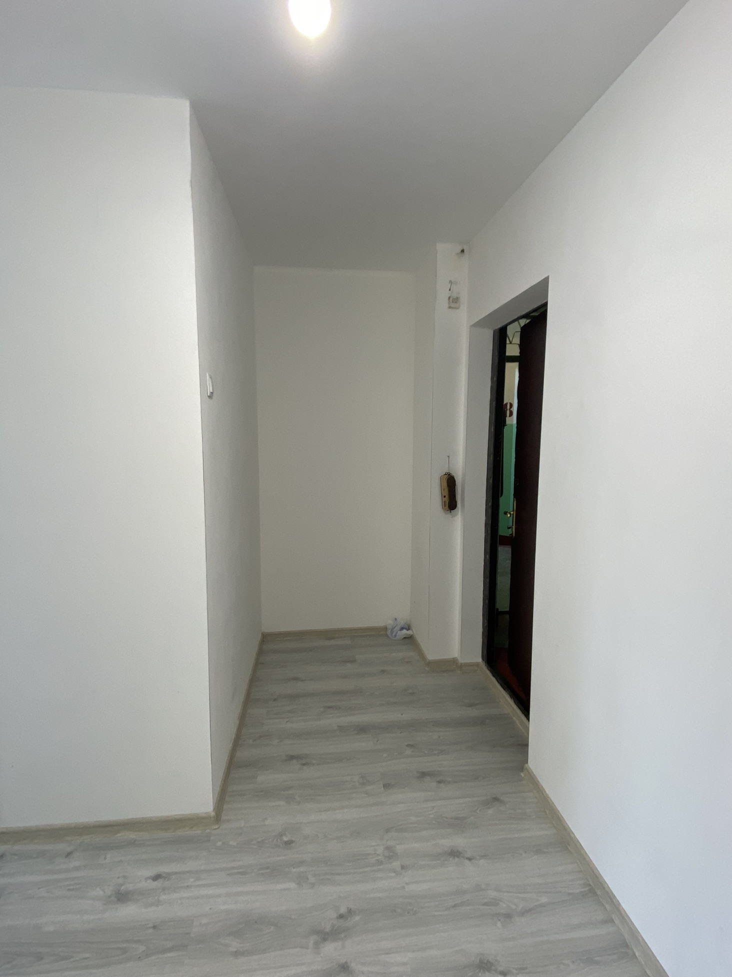 -все стены выровнены и подготовлены под обои (3 слоя штукатурки, шпаклевки и грунтовки)