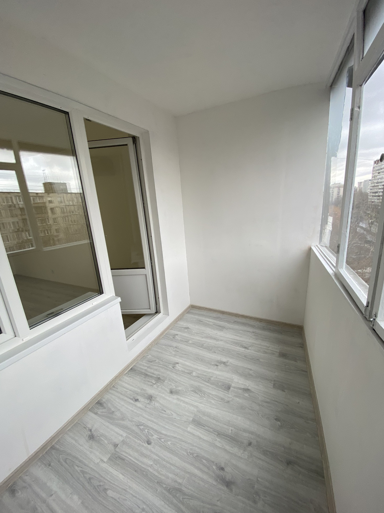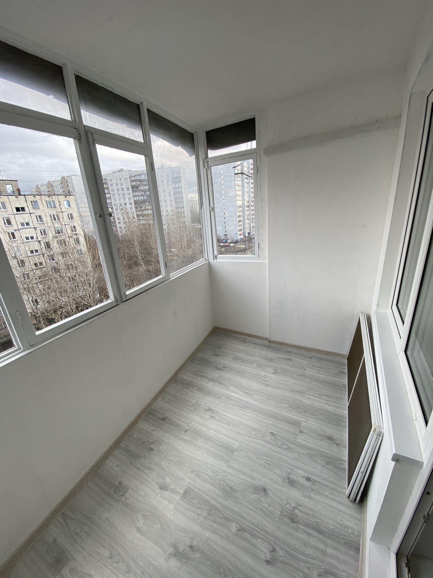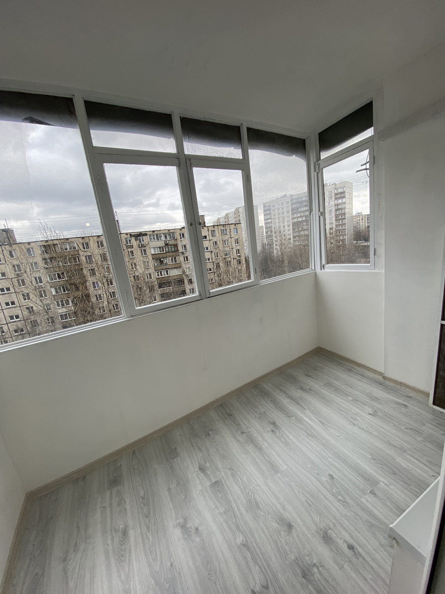 -на лоджии поменяны полы и выровнены стены (лоджия  застекленная, очень большая и широкая, трапециевидной формы)