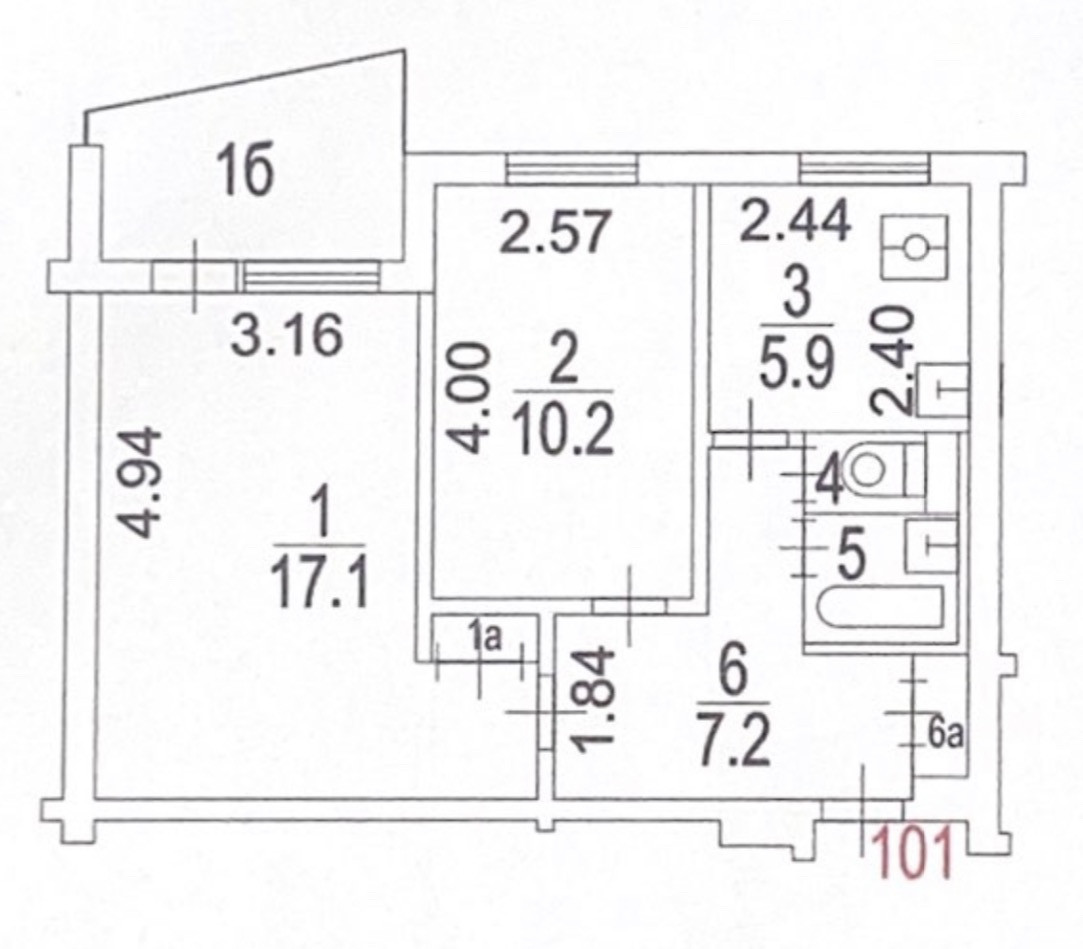 Общая площадь 44.2 м2