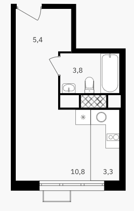 Общая площадь 23.3 м2