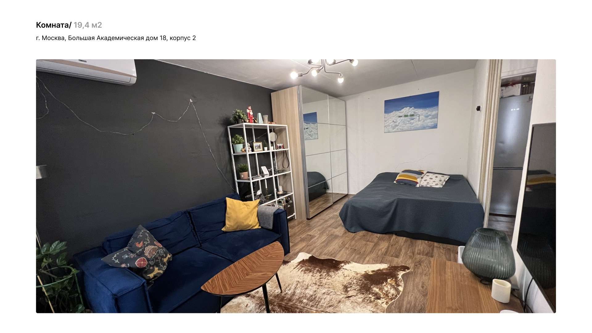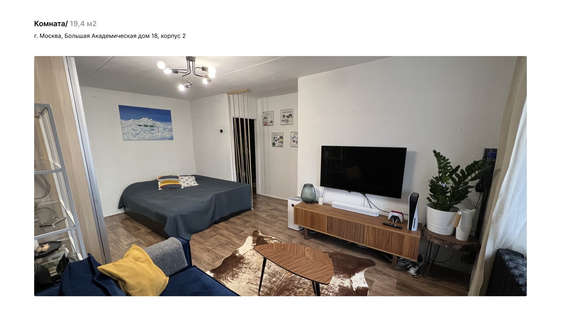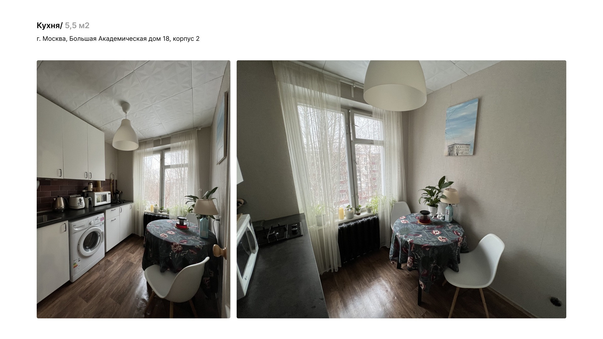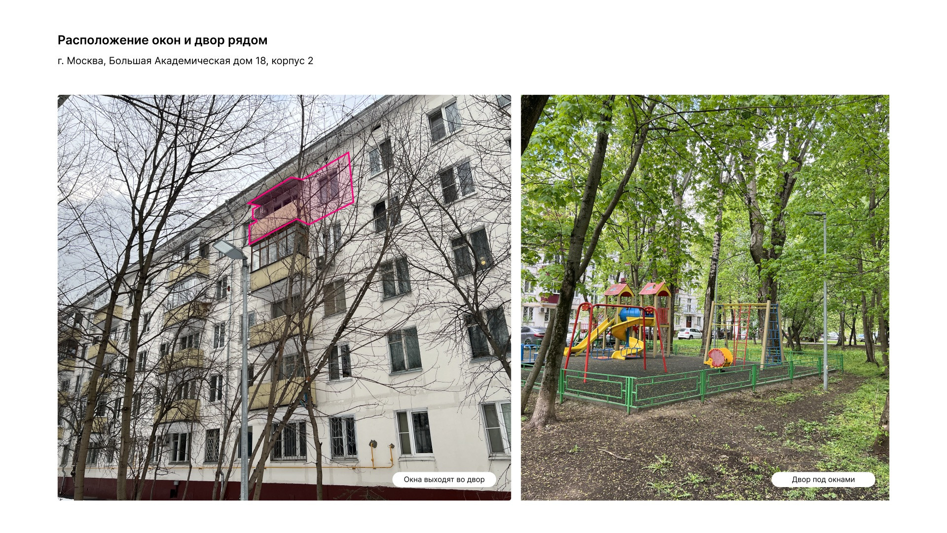 Однокомнатная квартира 31 м2 (площадь с балконом  33,8 м2) на 5 этаже пятиэтажного дома по адресу ул. Большая Академическая 18к2. Окна квартиры выходят на юго-запад, во двор. Летом из окна видны только кроны деревьев, солнцу не мешают. Дом расположен в тихом районе Коптево в шаговой доступности от Тимирязевского лесопарка, вход в парк 150 м от дома. Дом газифицирован. В программу реновации не входит.