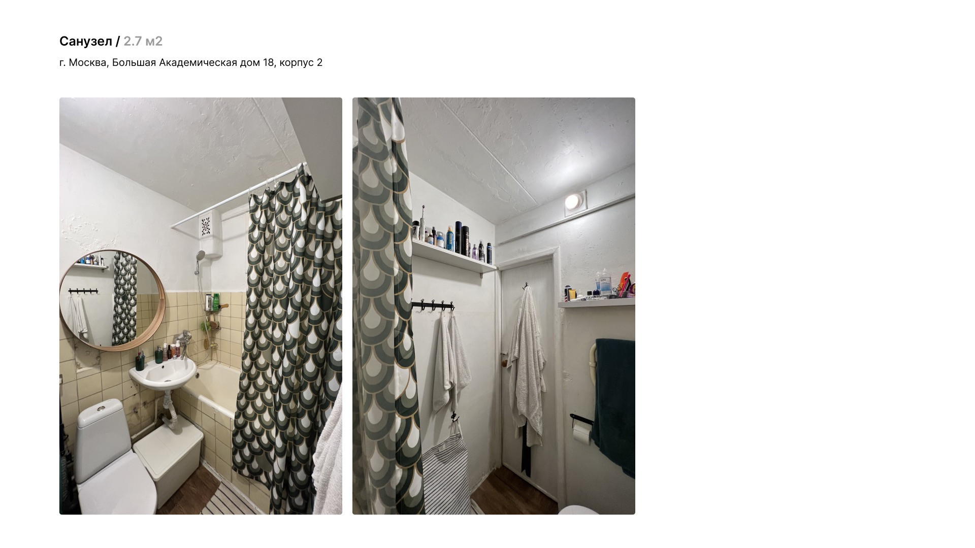 Поверхностный косметический ремонт делали в 2019 году. Санузел объединенный.  Перепланировок не осуществлялось.