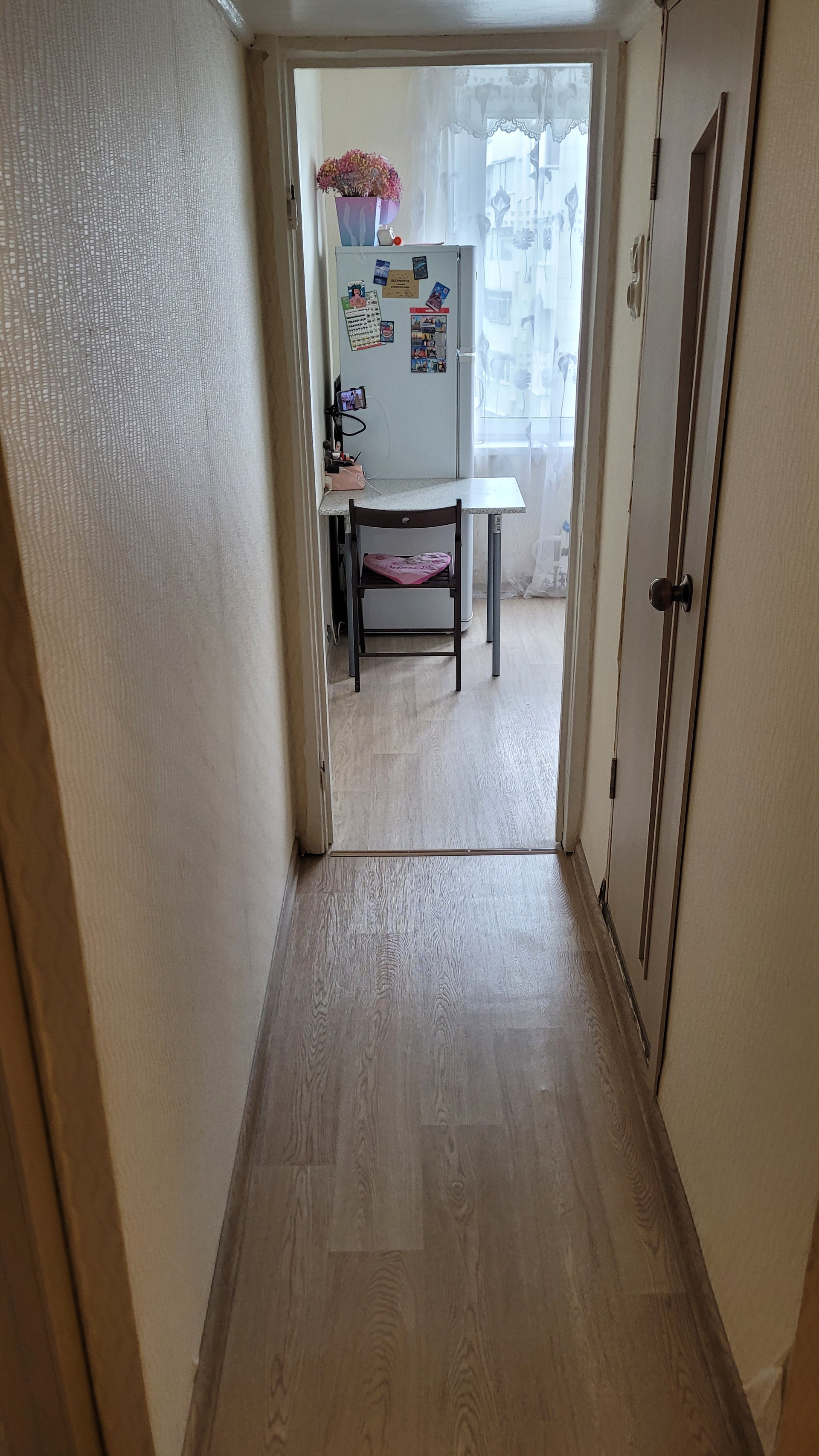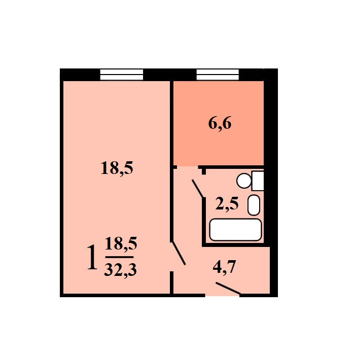 Комната 18,5, кухня 6,6, в коридоре при входе предусмотрено место для шкафа.